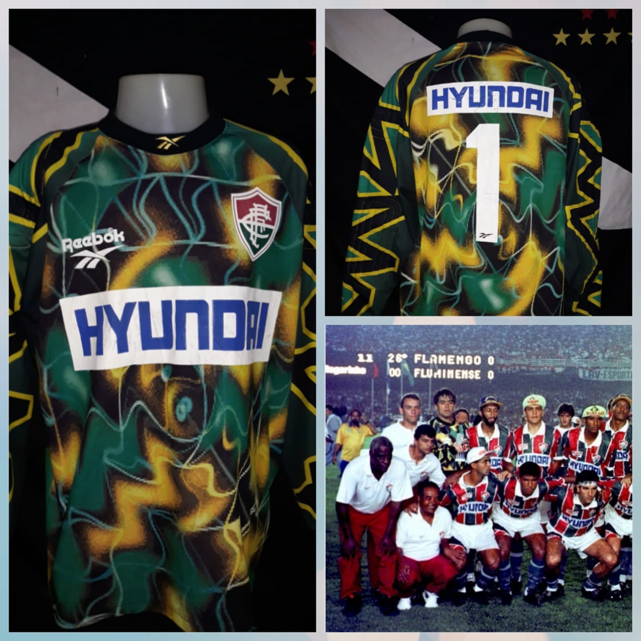 Raríssima camisa usada em jogo pelo Wellerson, no Fluminense, em 1995 | Conjunto usado em jogo pelo goleiro Marcio na campanha do título da Libertadores 1998. | Modelo usado por Zico, no início de sua carreira no Flamengo, em 1979, no seu primeiro clássico contra o Vasco, de Roberto Dinamite. |