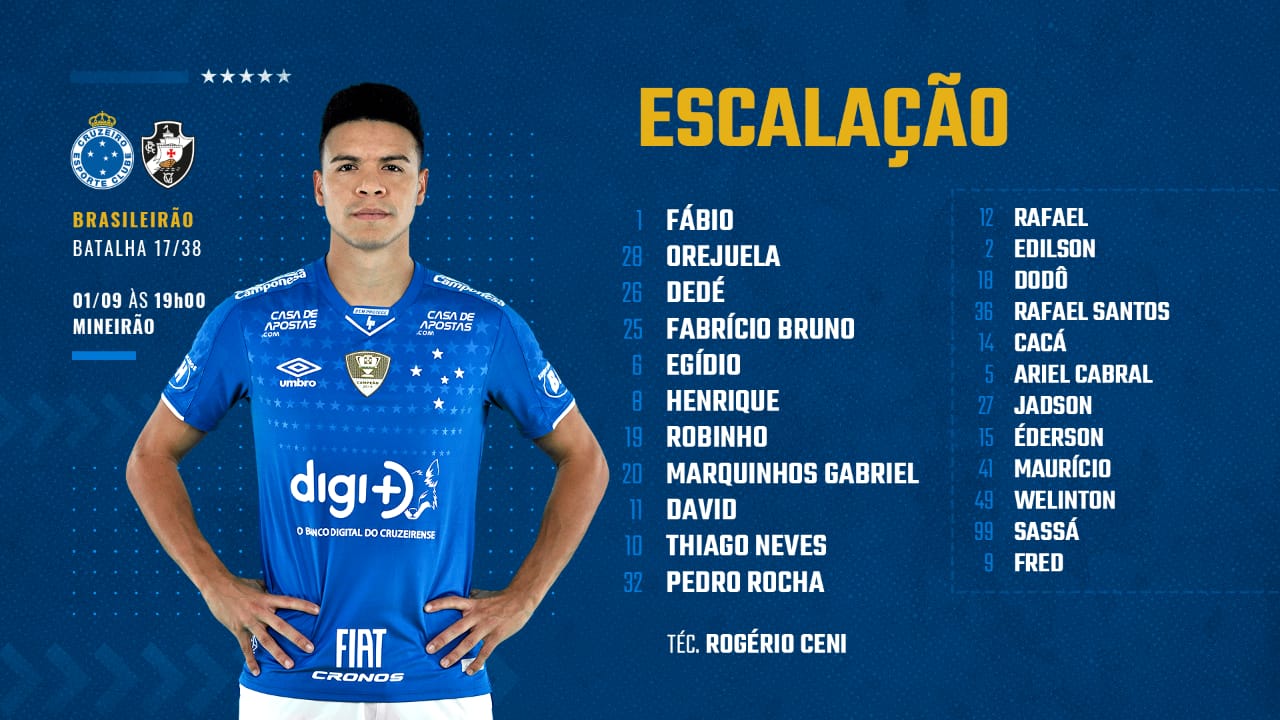 Veja a escalação do Cruzeiro para o jogo contra o Vasco; ex-vascaínos Fábio e Dedé são titulares