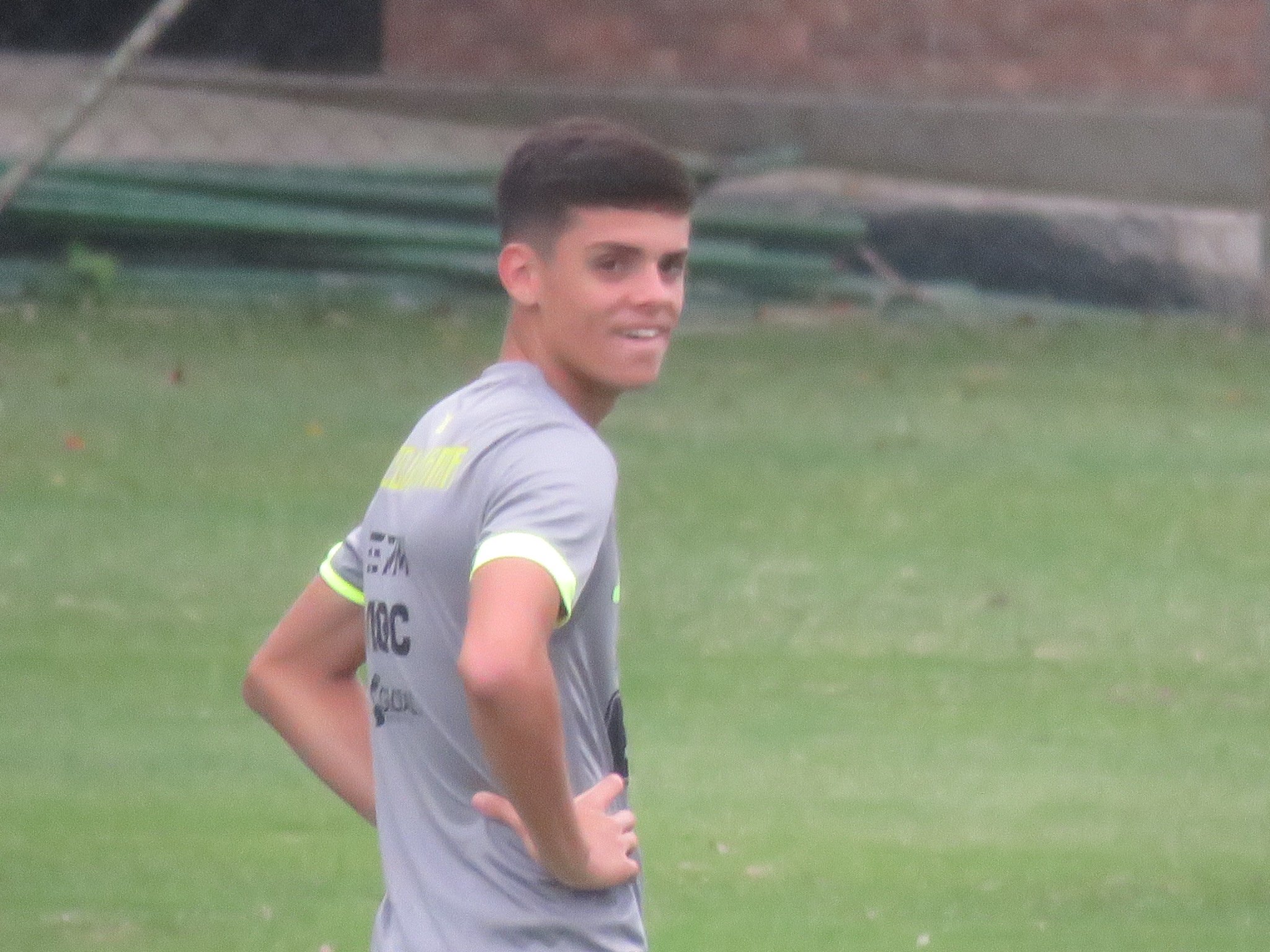 Apenas quem não jogou contra o Cruzeiro em campo. Quatro meninos da base participam do treino: o lateral-direito Cayo Tenório, o meia Gabriel Pec (foto) e os atacantes Kaio Magno e Figueiredo. #gevas