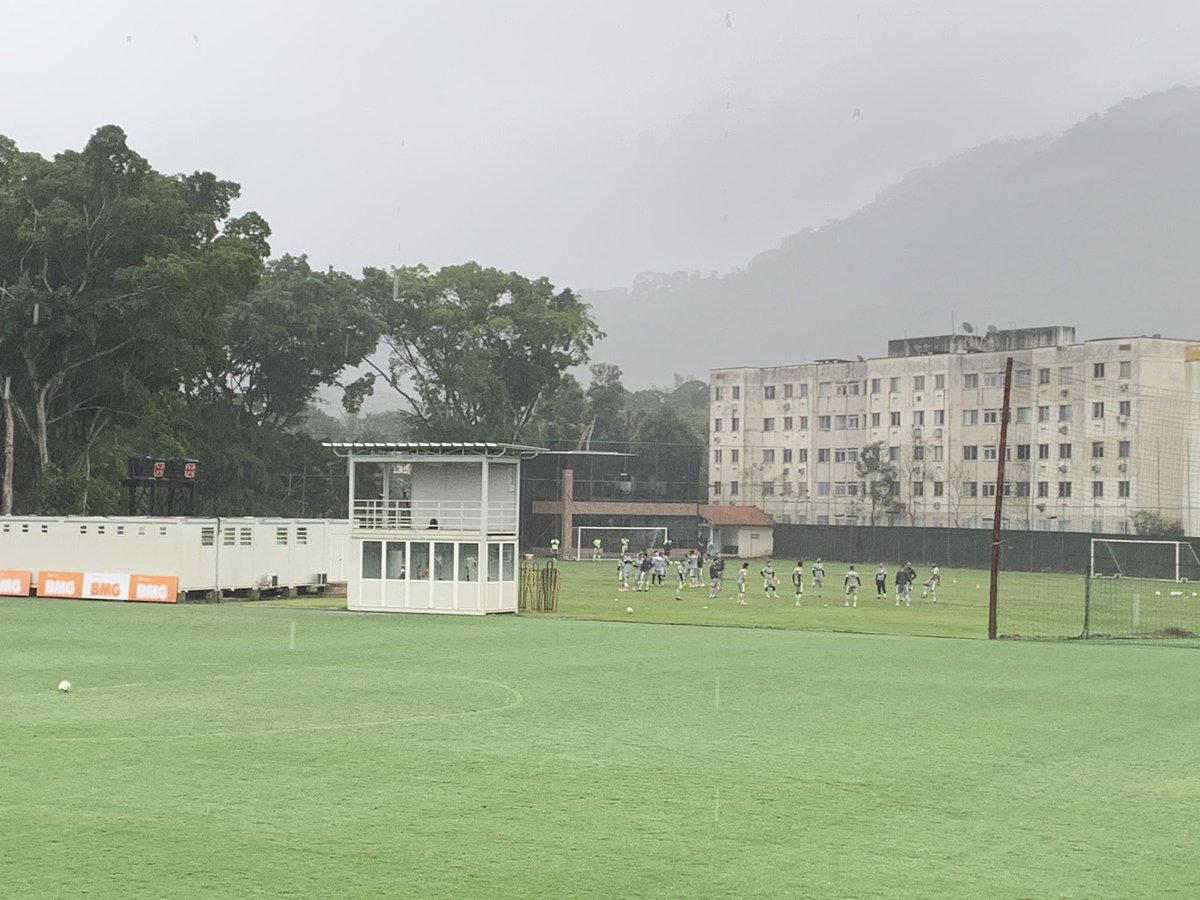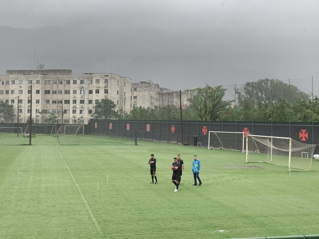 O atacante Clayton está na área e já foi devidamente batizado com um corredor de coletes nas costas #gevas