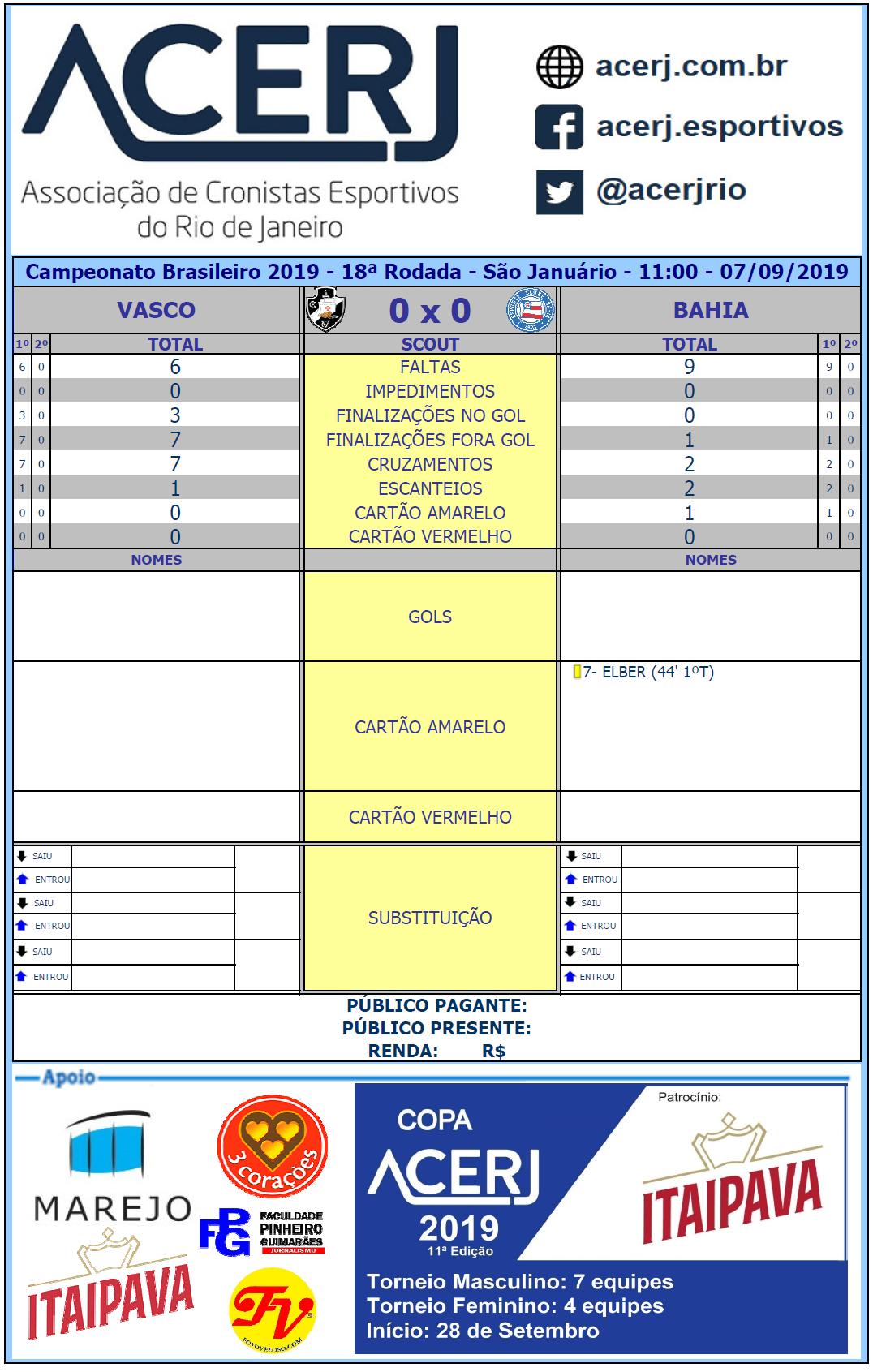 Scout do 1º Tempo de Vasco e Bahia pela 18ª Rodada do Campeonato Brasileiro 2019 em São Januário #acerjinforma #VASxBAH #Brasileirão2019