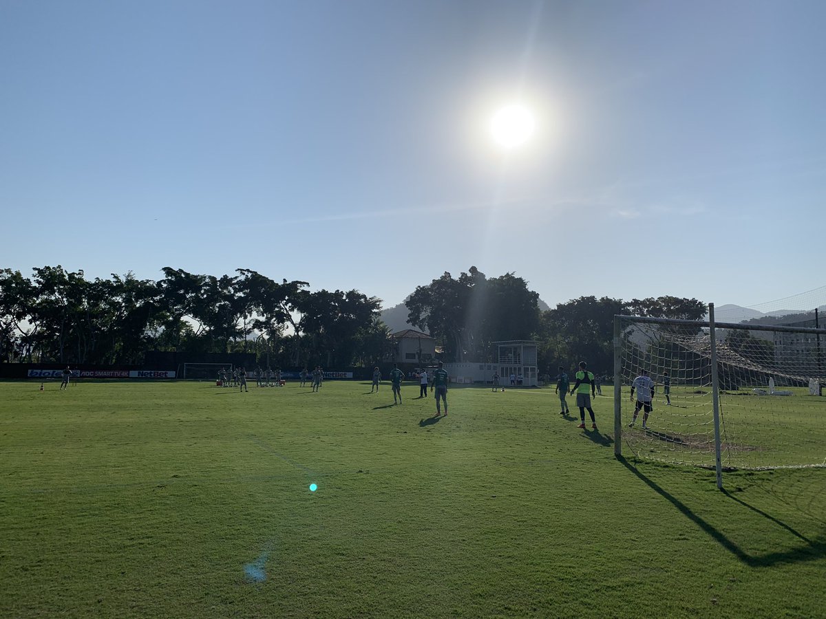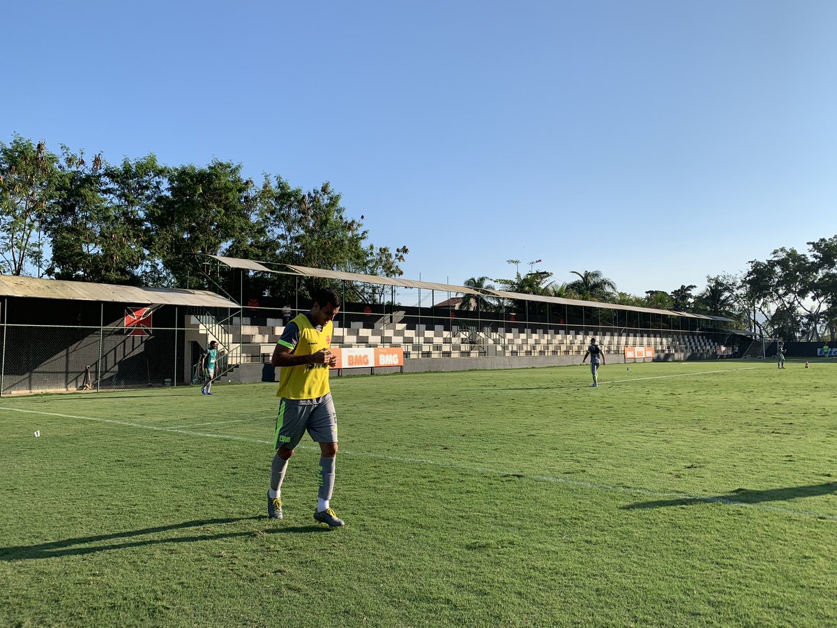 Henriquez não está em campo - ontem, ele saiu no meio do treino. Luxemburgo monta a linha defensiva no treino de ataque contra defesa com Nathan, Werley, Castan e Danilo Barcelos. Richard é o primeiro volante #gevas
