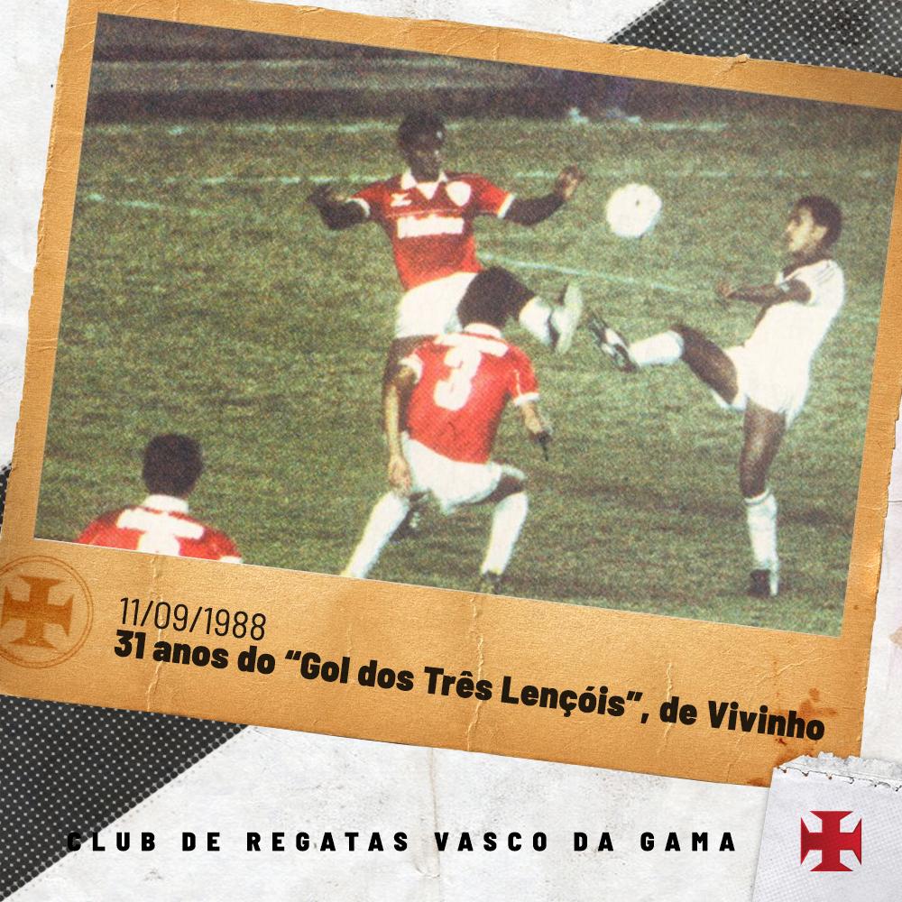 No dia 11/09/1988, no confronto entre #VascoDaGama e Portuguesa (Copa União), Vivinho marcava o gol antológico conhecido como "Gol dos Três Lençóis". #CentroDeMemória