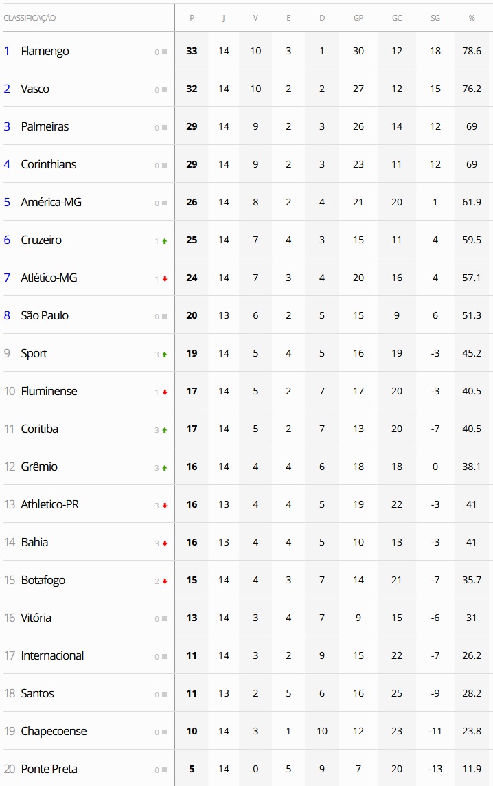 O Vasco segue em 2º lugar na 1ª fase do Brasileiro Sub-20 e virtualmente classificado para a 2ª fase. Os jogos que fecham a 14ª rodada não influirão na colocação do Gigante da Colina