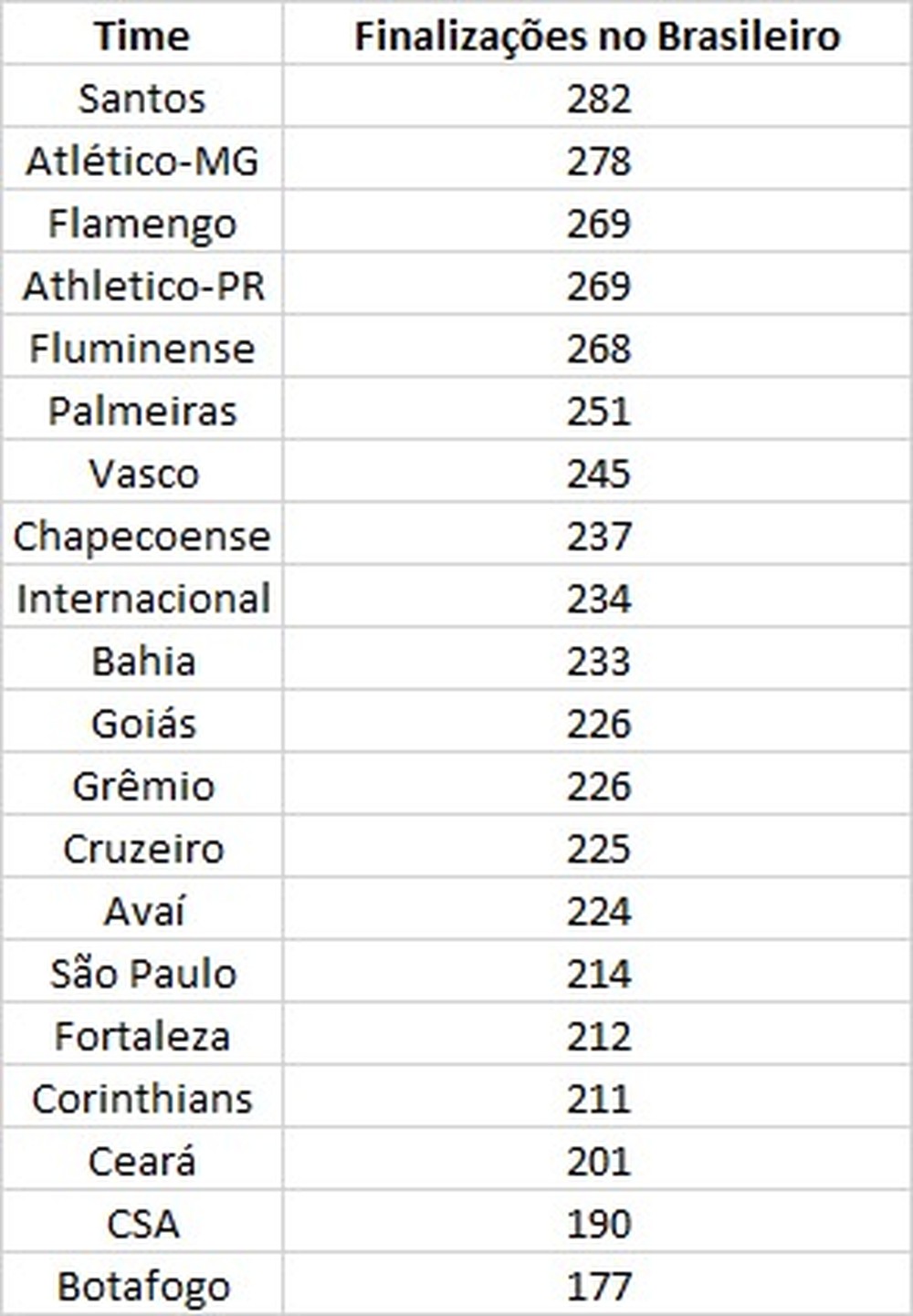 Sem marcar há duas rodadas no Campeonato Brasileiro, o Vasco tem encontrado dificuldades para balançar as redes e, evidentemente, ainda sente a falta de um camisa 9. Sétimo clube que mais finaliza no Campeonato Brasileiro, o time é também um dos que tem o menor aproveitamento nesse quesito, ganhando apenas de Avaí e CSA. Na média, precisa de 15 tentativas para acertar.