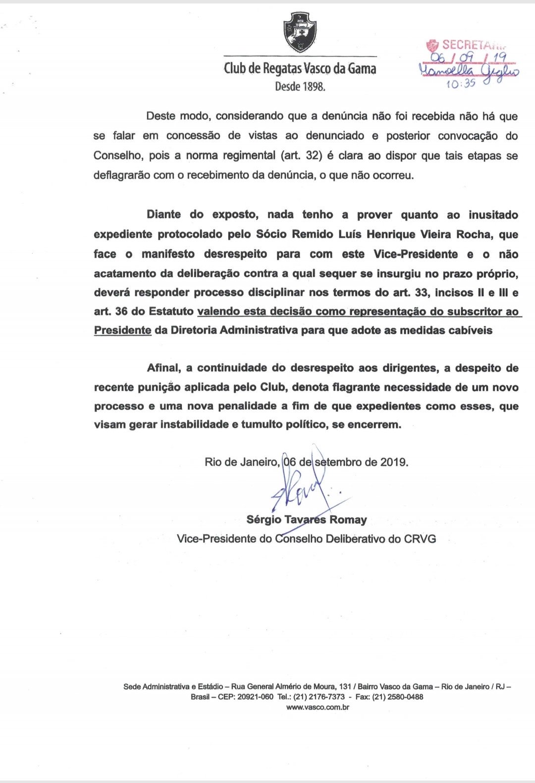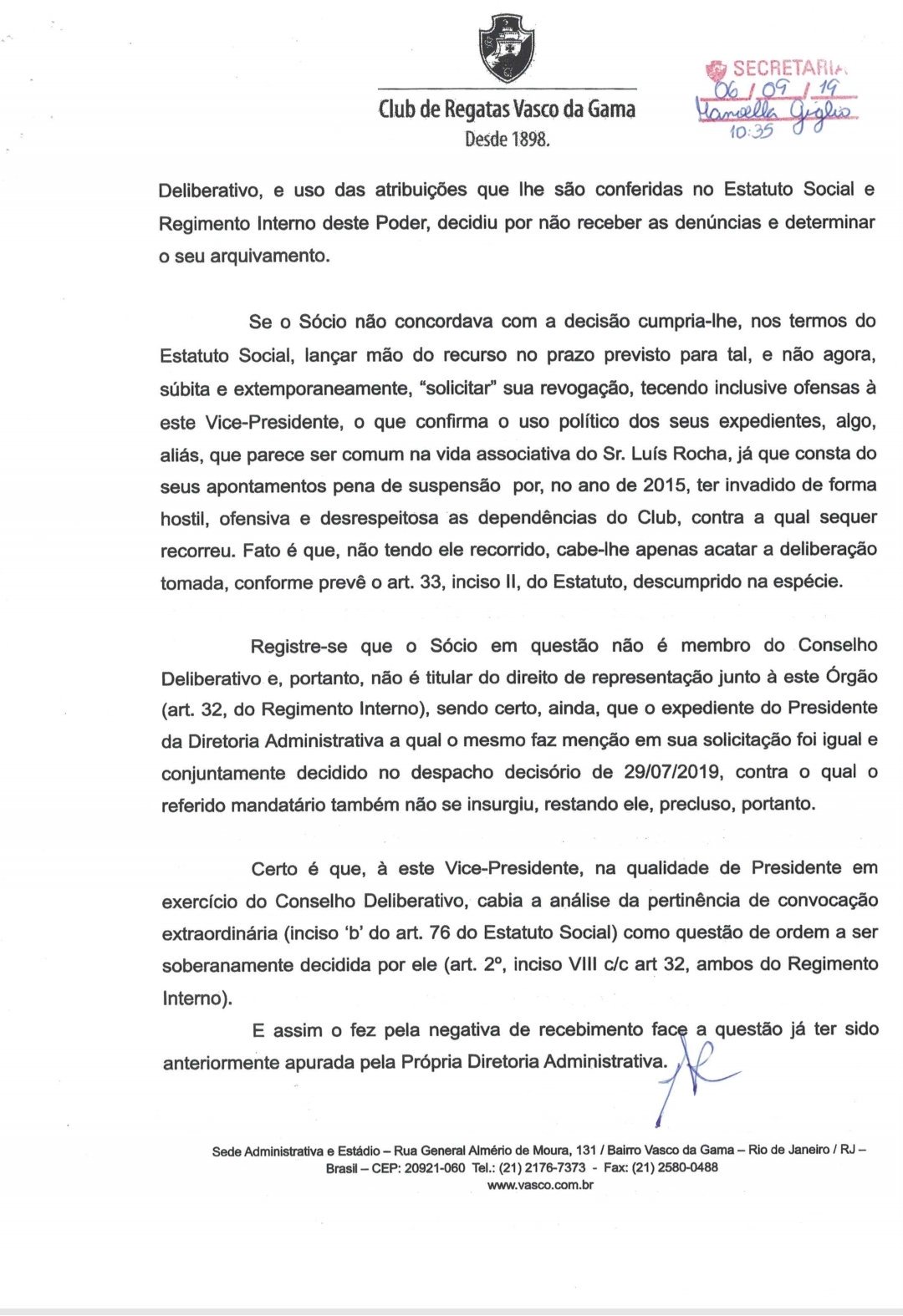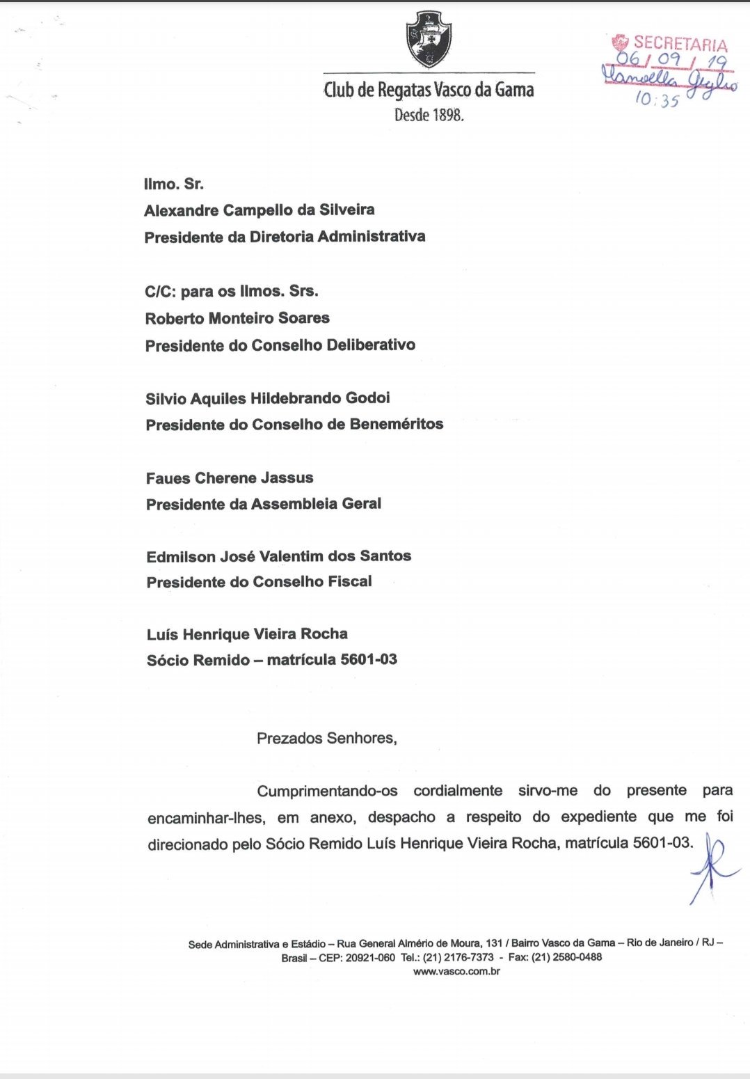 Fonte: Twitter do presidente do Conselho Deliberativo do Vasco Roberto Monteiro