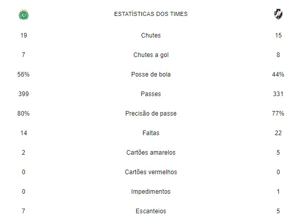 O resultado deixa o Vasco mais longe da zona do rebaixamento. Com 23 pontos, a equipe carioca sobe três posições e dorme, provisoriamente, na 12ª colocação. Já a Chapecoense está garantida na vice-lanterna, com 14 pontos, no final do primeiro turno.