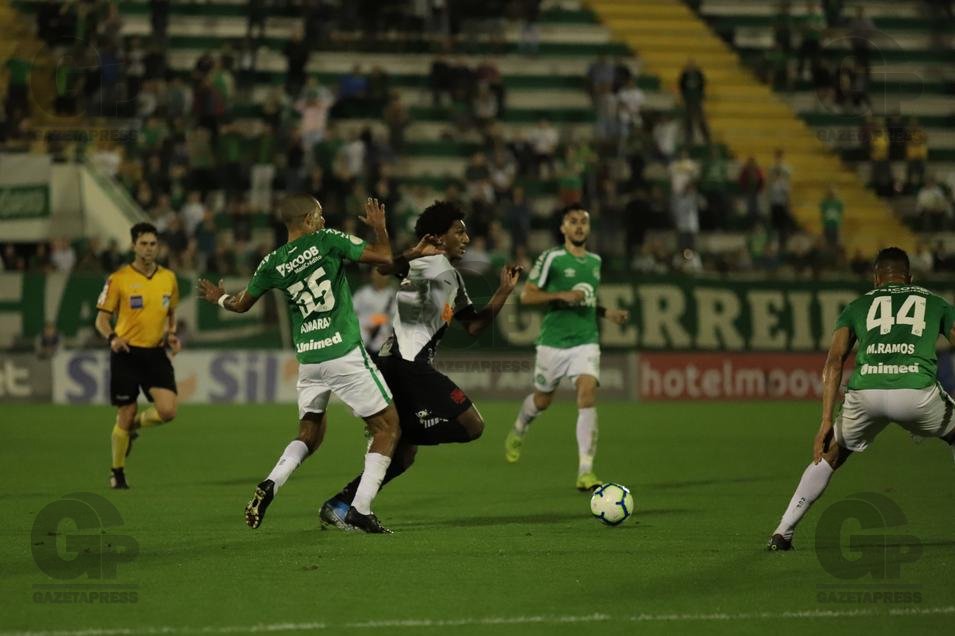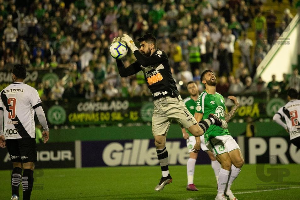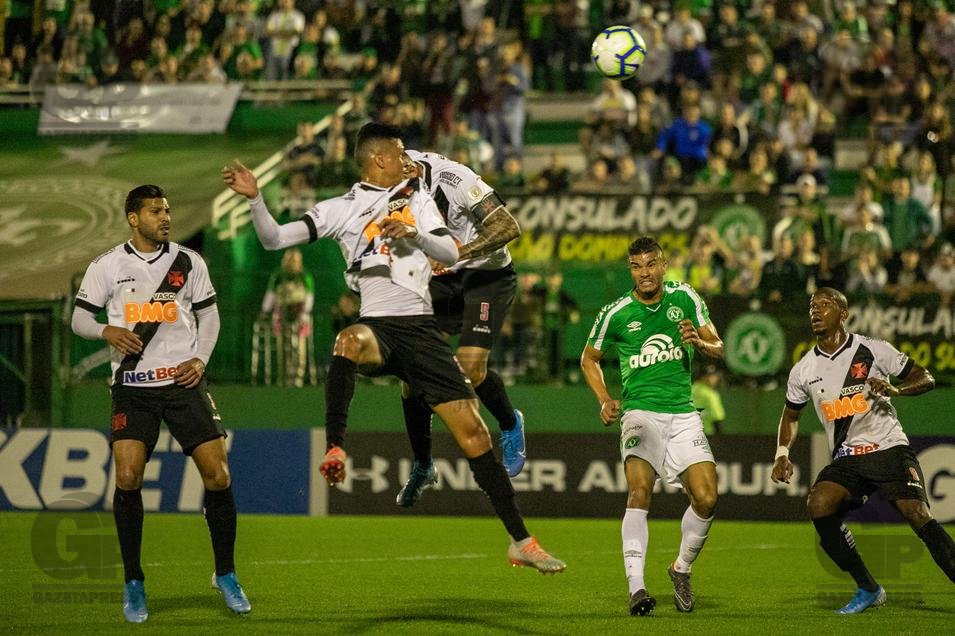 Apesar do domínio, o ataque vascaíno não conseguia se aproximar do gol da Chape e, aos poucos, a equipe catarinense foi crescendo na partida. No terço final da primeira etapa, a Chape até teve mais presença ofensiva que o Cruz-maltino, mas pecava nas finalizações e facilitava para Fernando Miguel.
