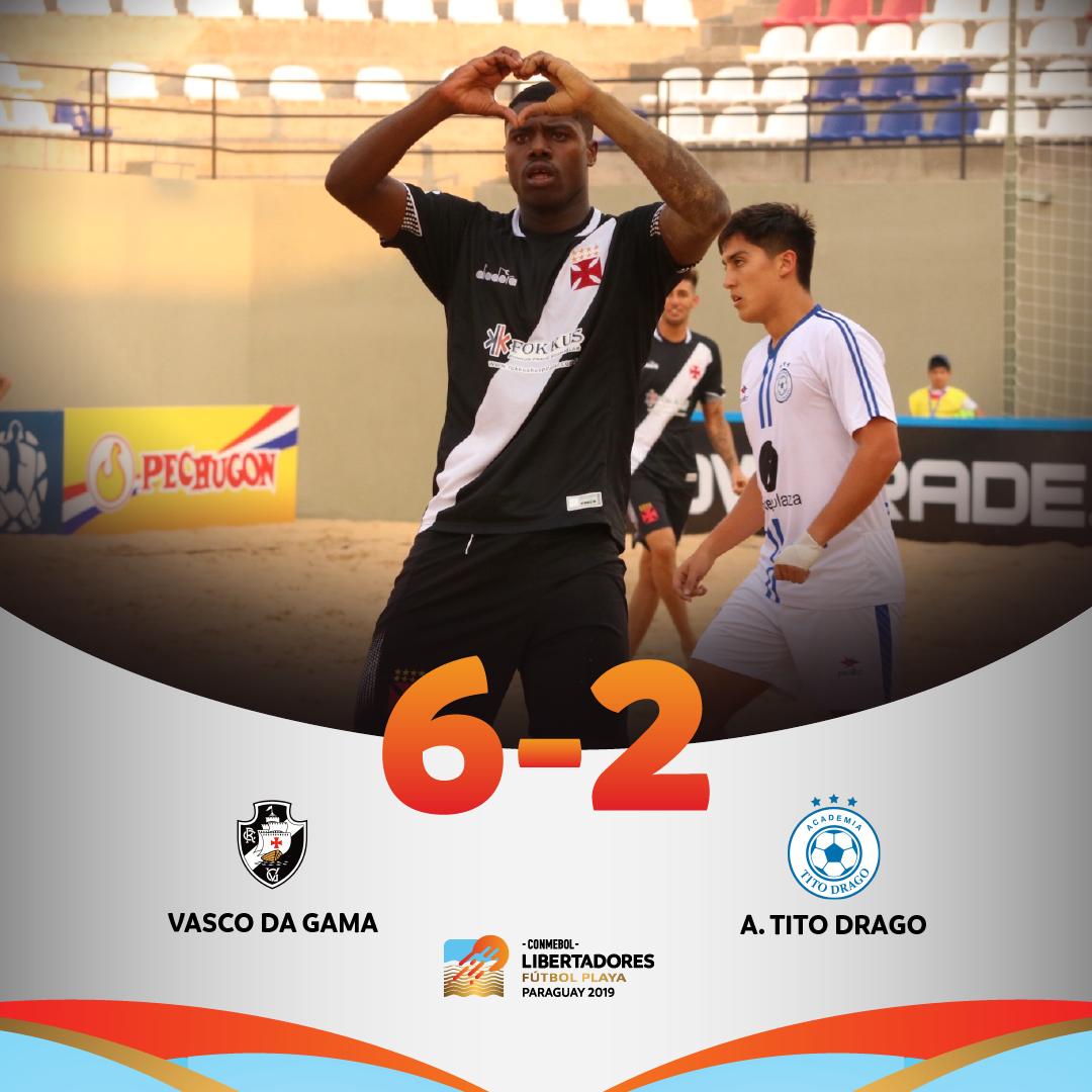 @VascodaGama 🇧🇷😍 Fim de jogo! @VascodaGama goleou a #AcademiaTitoDrago por 6-2 pela segunda rodada da #LibertadoresFP. #TremBalaDaAreia