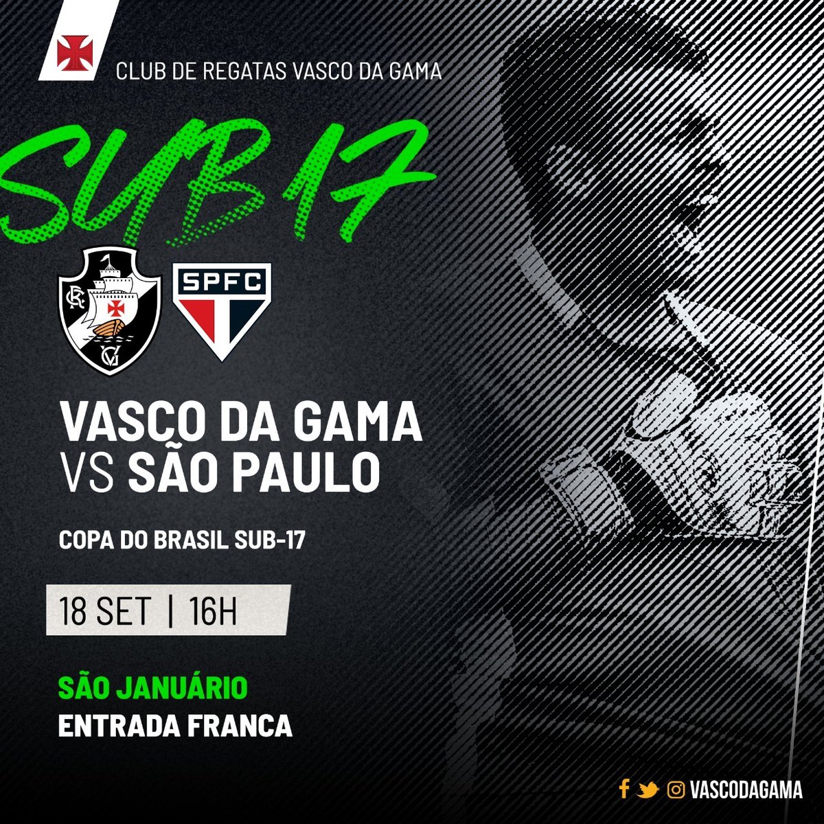 Juvenil: Vasco chama torcida para jogo desta 4ª em São Januário contra o São Paulo pela Copa do Brasil Sub-17