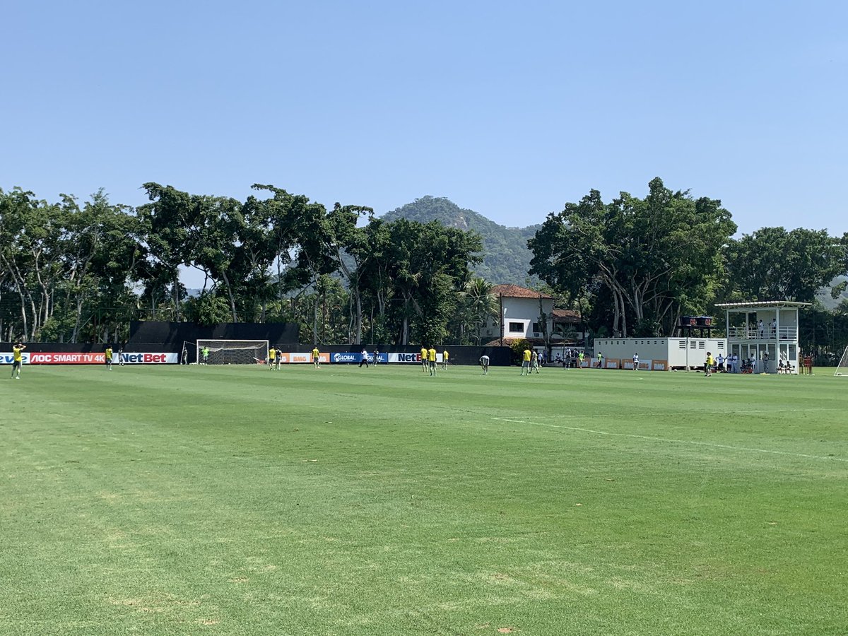 Luxemburgo para a atividade a todo momento para orientar os jogadores dos dois times. Os titulares atacam e os reservas se defendem #gevas