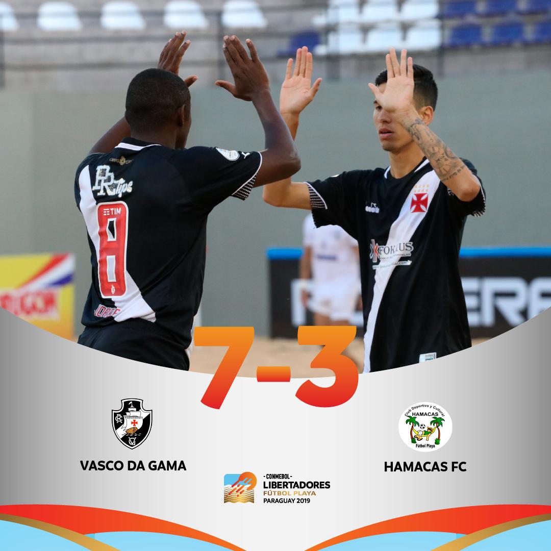 @VascodaGama ⚽?? A goleada sobre o #Hamacas deixa o @VascodaGama como único representante do Brasil nas semifinais da #LibertadoresFP! #trembaladaareia