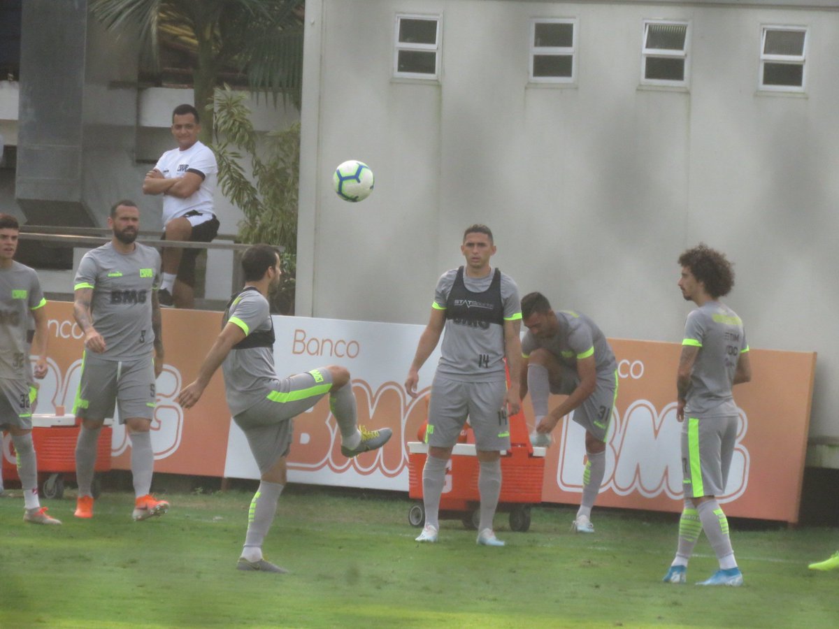 Jogadores disputam altinha enquanto goleiros se aquecem no CT do Almirante