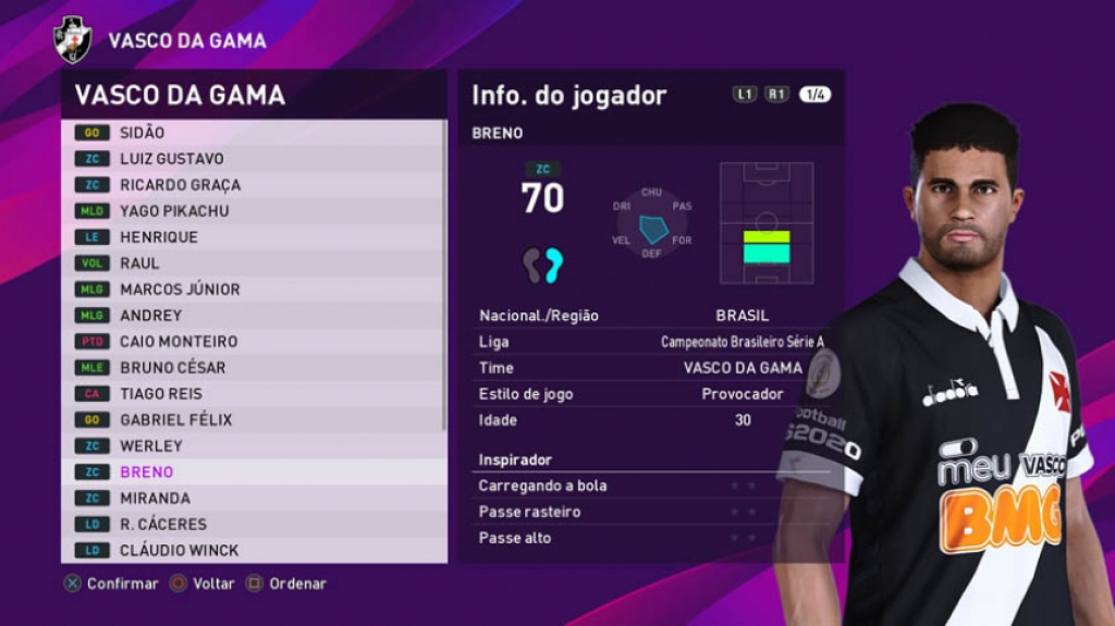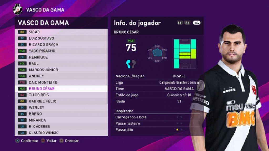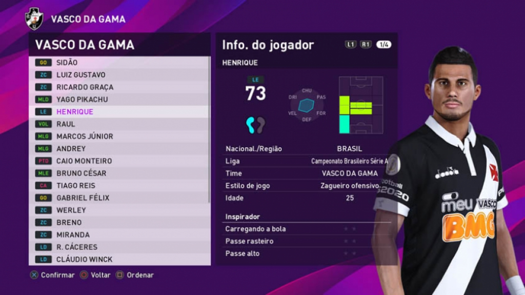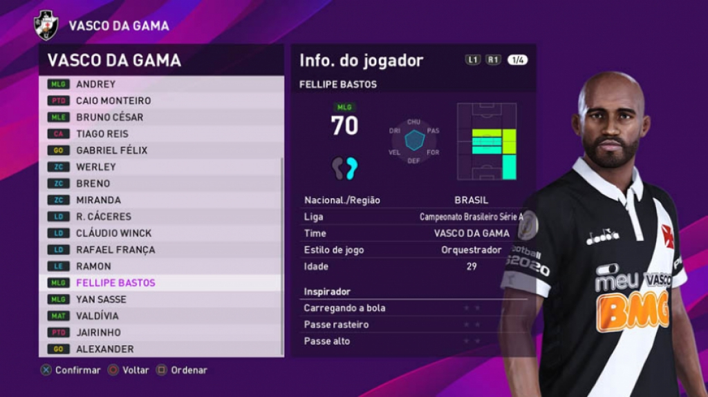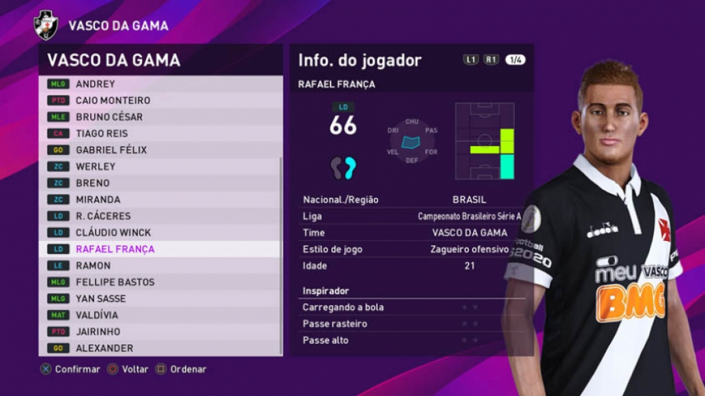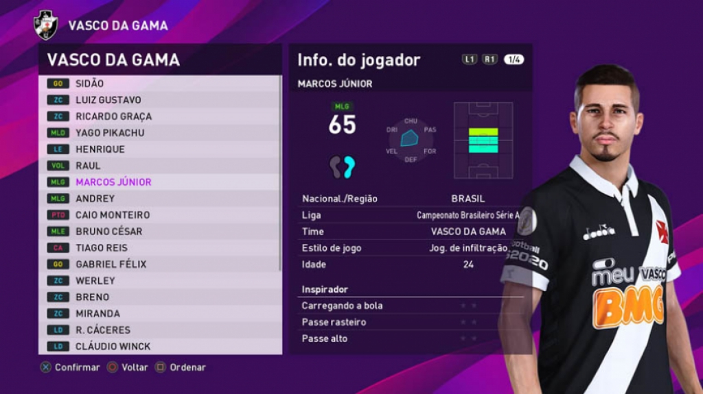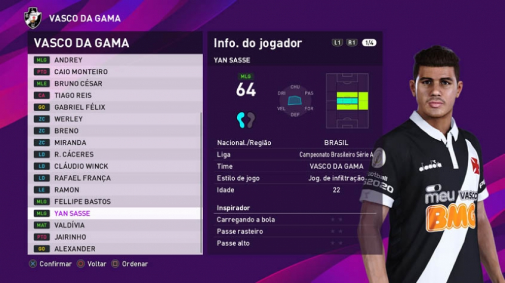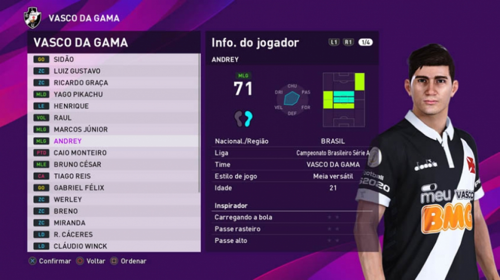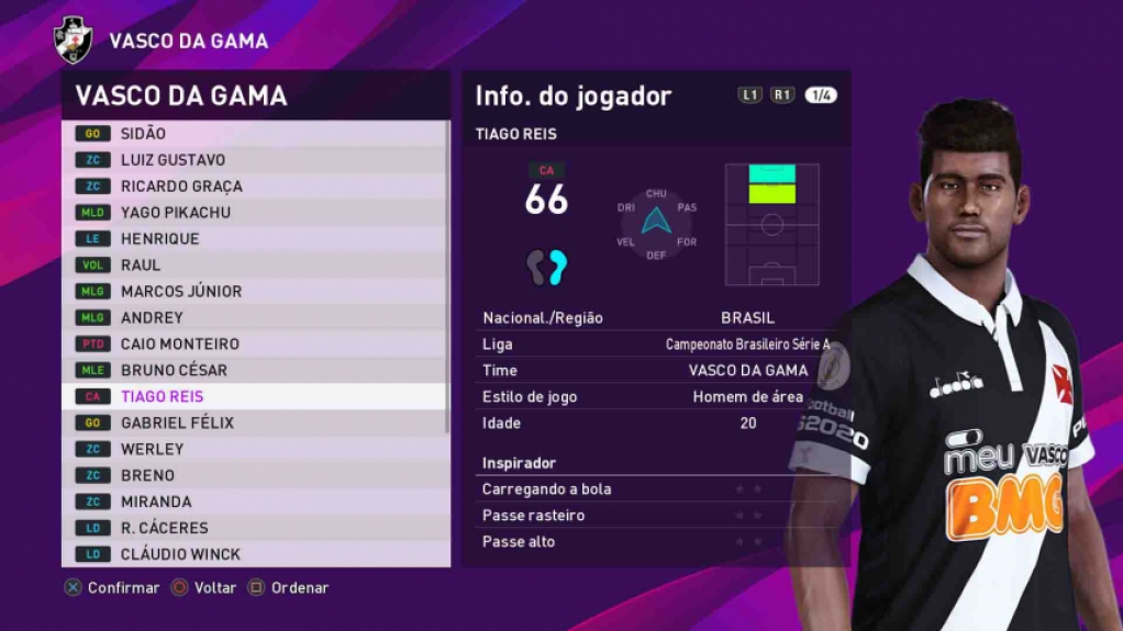 Veja imagens e níveis dos jogadores do Vasco no PES 2020