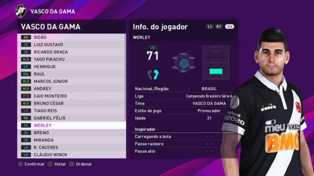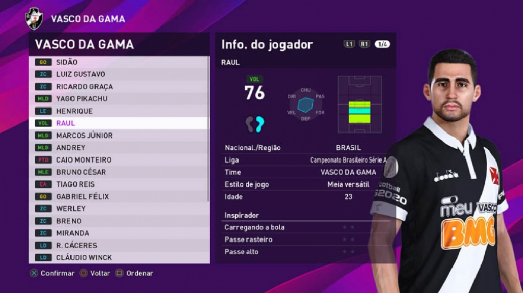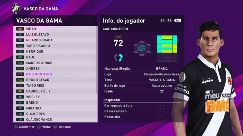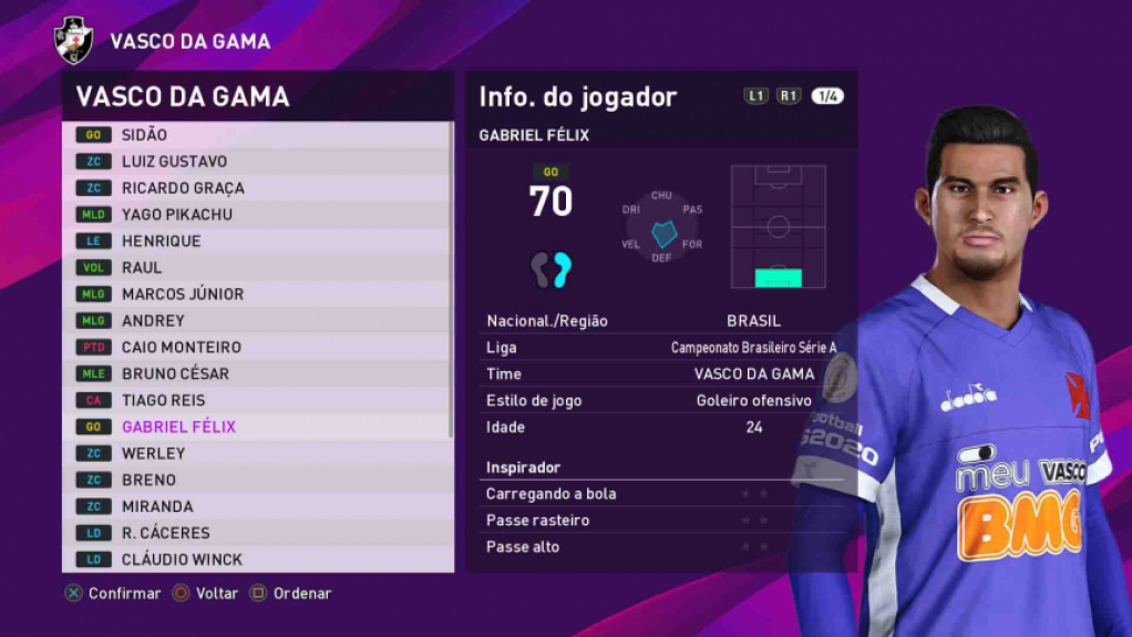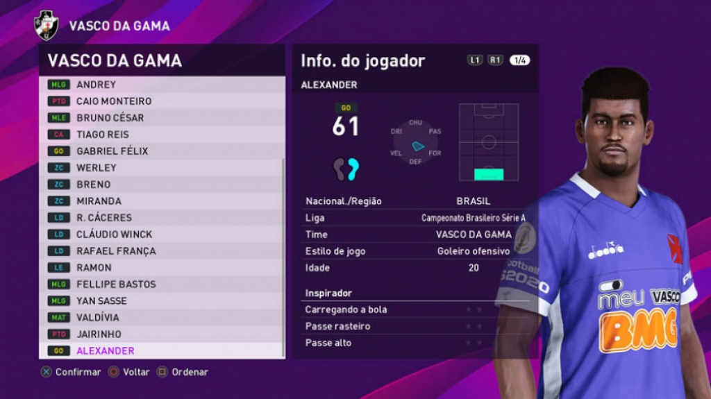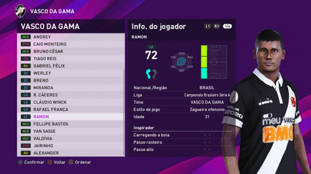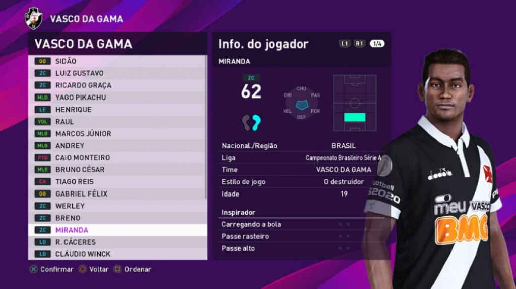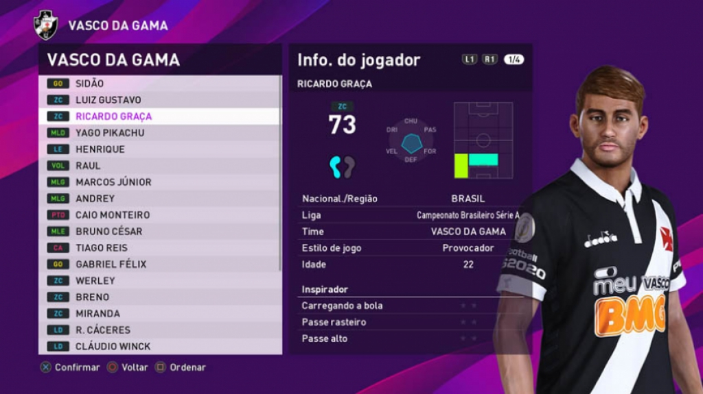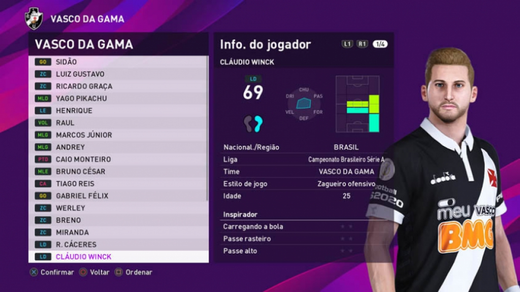 Veja imagens e níveis dos jogadores do Vasco no PES 2020