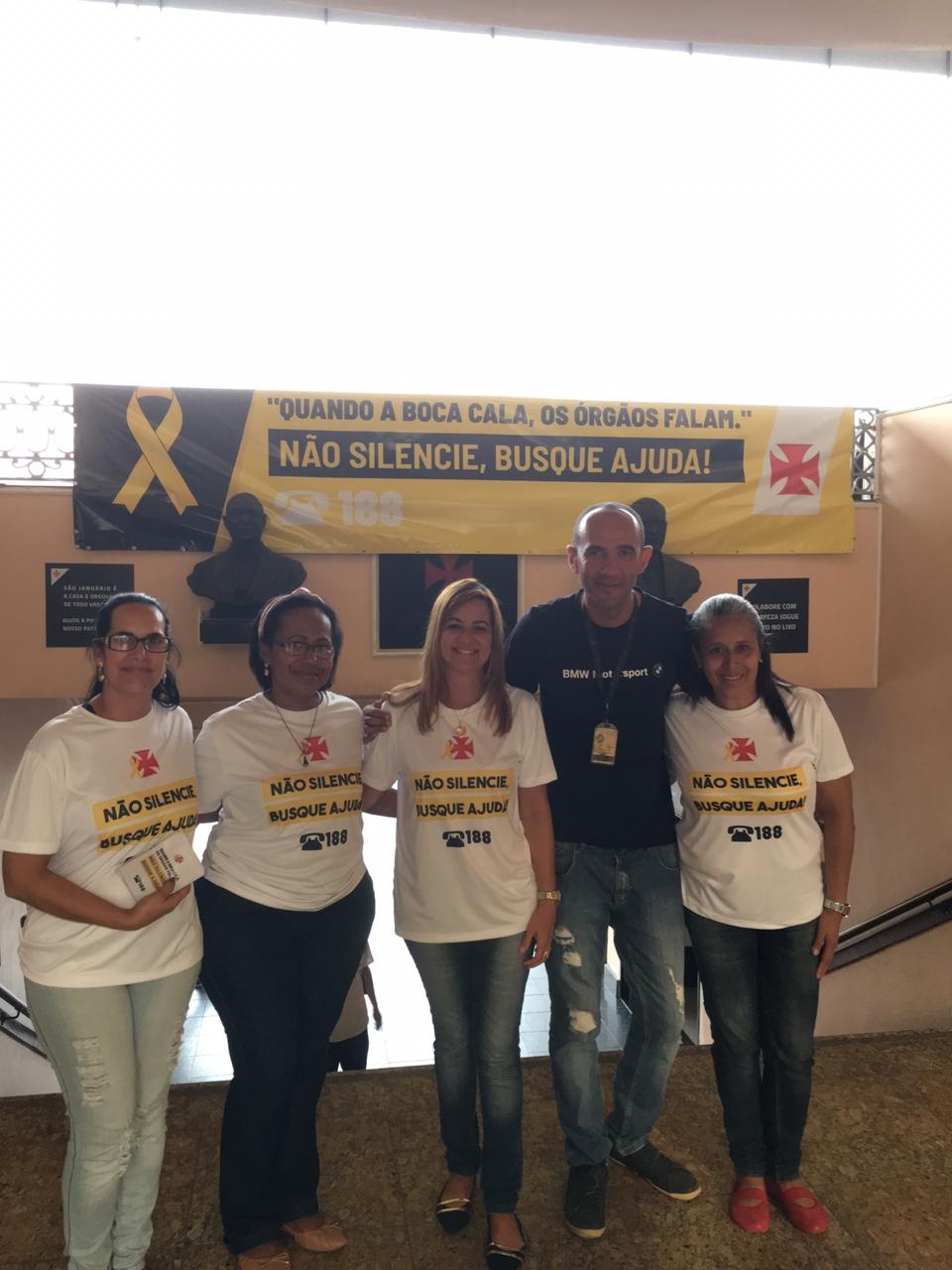 O Club de Regatas Vasco da Gama organizou nesta sexta-feira (20/9) uma campanha de apoio ao Setembro Amarelo. Esta iniciativa serviu para conscientizar funcionários do clube, sobre a prevenção do suicídio e a depressão, uma doença silenciosa e muito triste. O Vasco foi o primeiro clube a implantar um departamento psicossocial com atendimento clínico para atletas, funcionários e seus familiares. O clube atende ainda torcedoras vítimas de qualquer violação de direitos e conta com duas psicólogas de atendimento clínico, três assistentes sociais e uma pedagoga.