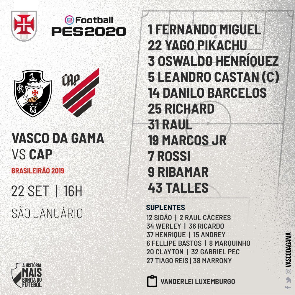 15:12 - Athletico-PR escala titulares para o jogo deste domingo contra o Vasco; confira