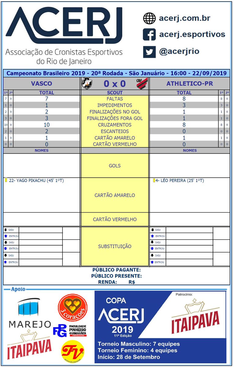 Scout do 1º Tempo de Vasco e Athletico-PR pela 20ª Rodada do Campeonato Brasileiro 2019 em São Januário #acerjinforma #VASxCAP #Brasileirão2019