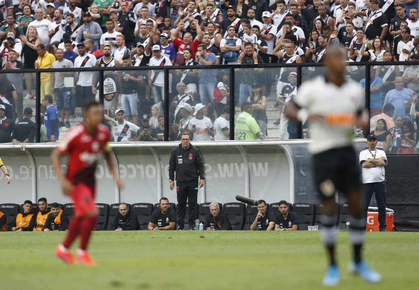 A partir dai, o Vasco cresceu na partida e voltou a criar boa chance aos 37 minutos. Marrony aproveitou cruzamento e cabeceou em cima de Santos. Os cruzmaltinos chegaram a marcar o segundo gol com Raul, mas o lance foi anulado após nova interferência do VAR.