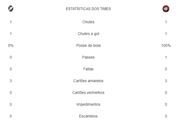 Cartões amarelos: Yago Pikachu, Osvaldo Henriquez e Richard (Vasco); Léo Pereira, Rony e Wellington (Athletico)