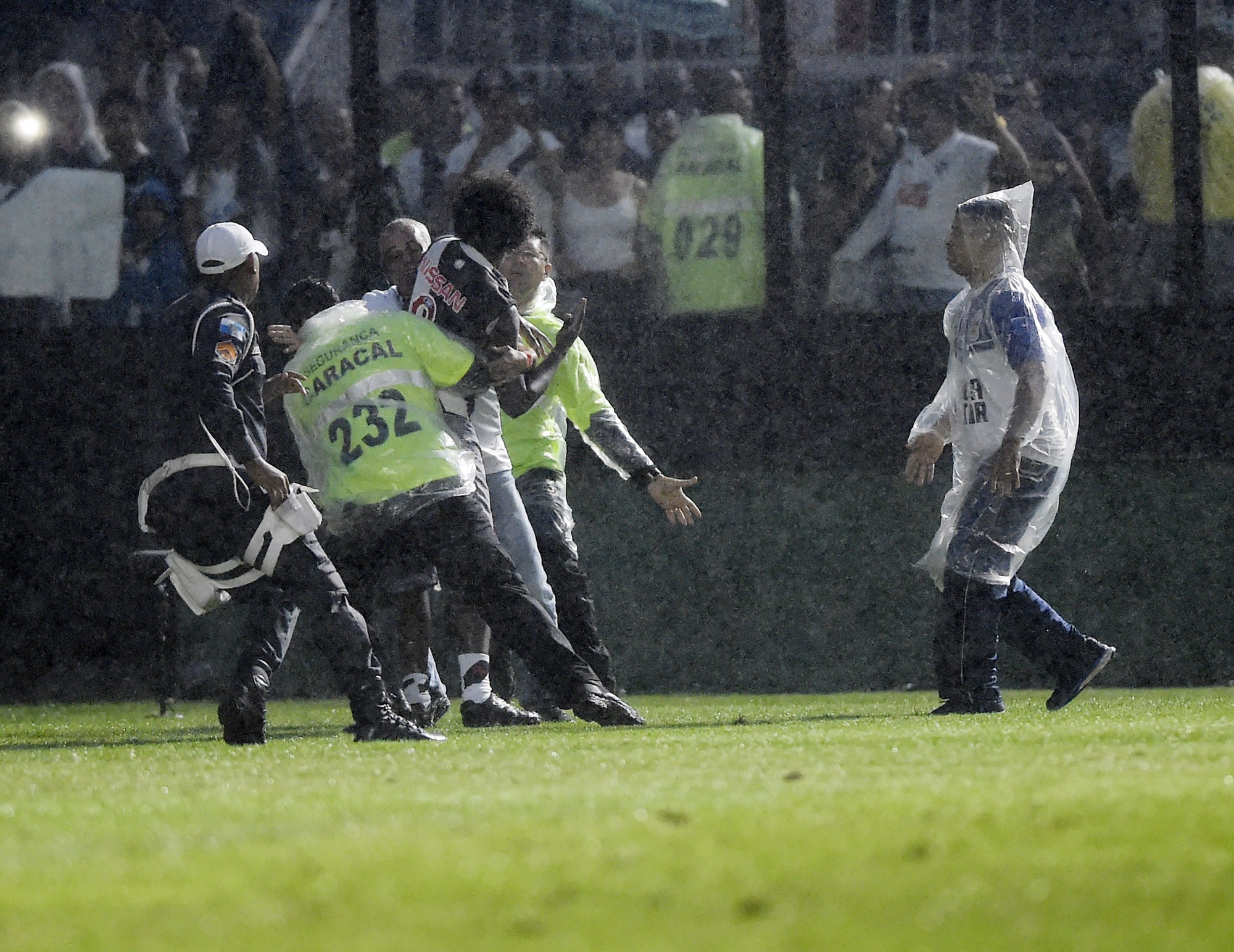 Torcedor tenta invadir gramado de São Januário após gol anulado do Vasco, mas é impedido por seguranças