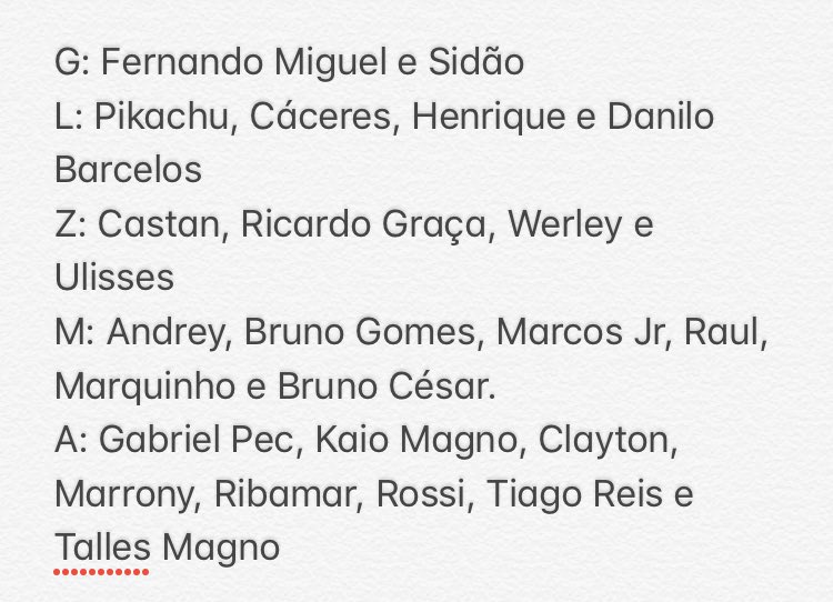 Relacionados do Vasco para enfrentar o Corinthians, neste domingo, na Arena Itaquera: