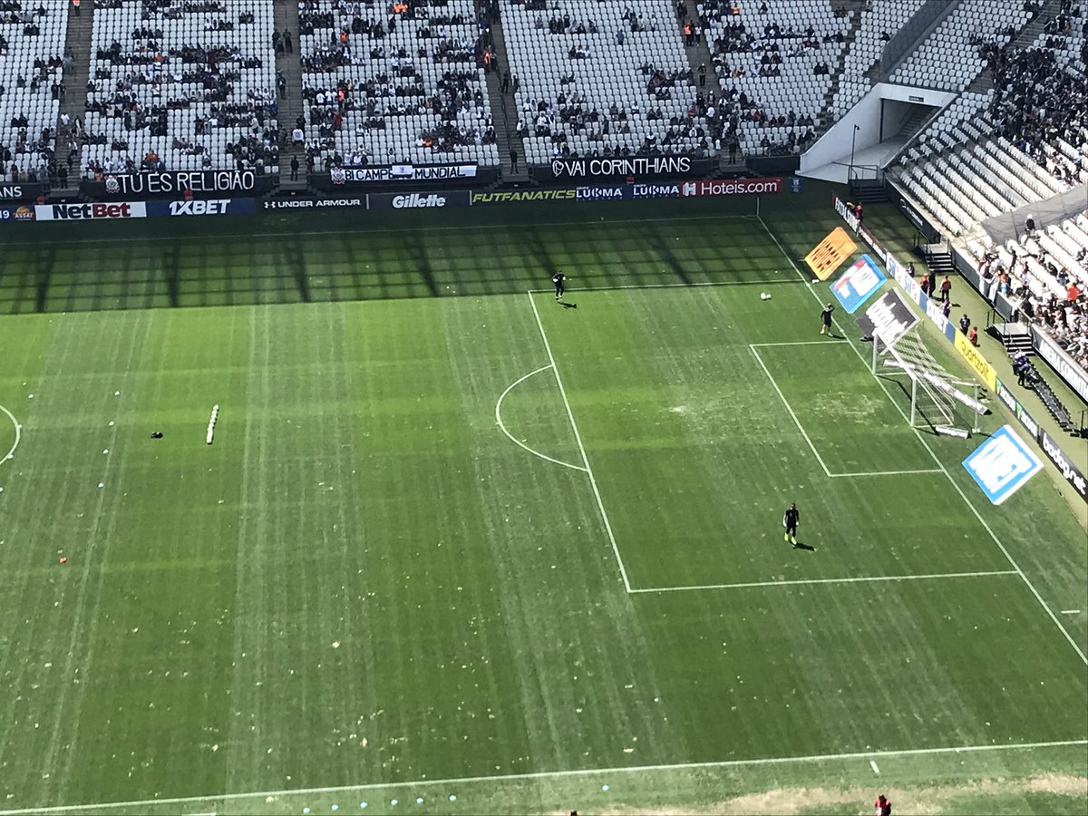Goleiros do Vasco sobem para o aquecimento. E esses pontinhos na foto não é qualidade ruim, é o campo ruim mesmo. #trarenacor