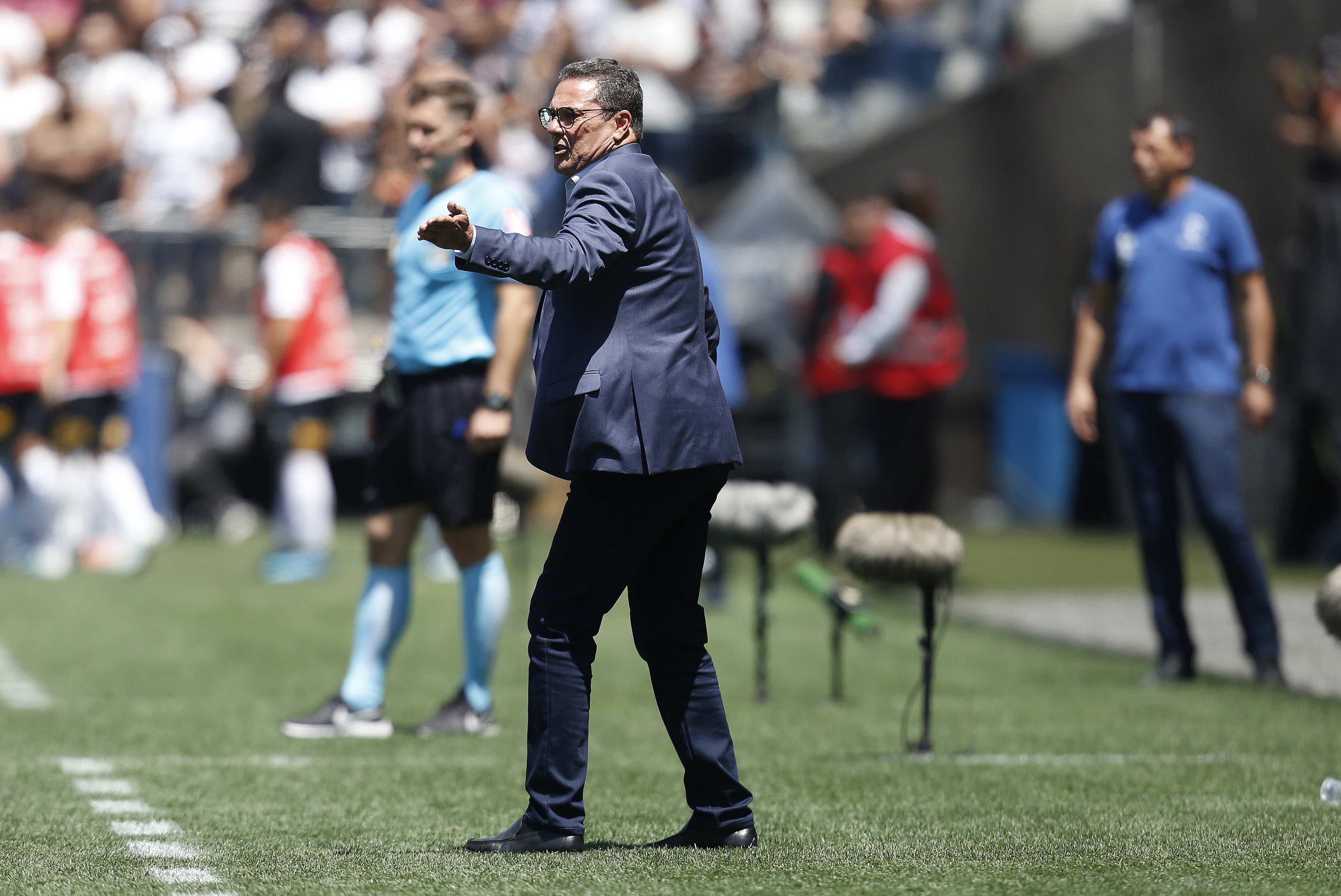"Jogamos como Vasco da Gama. Eu tenho falado para os jogadores que devemos jogar dessa forma. Apesar disso, não posso ignorar a influência do VAR. Sair com a vantagem é muito melhor, mas tivemos chance de colocar a bola para dentro. Não podemos apenas reclamar do VAR, precisamos colocar a bola para dentro. As chances apareceram e não colocamos a bola para dentro. Jogamos uma grande partida, mas o Corinthians conseguiu colocar a bola para dentro na única bola que foi. Temos que fazer o gol quando estivermos na cara do gol. Aconteceram coisas, como a estreia do Bruno, um menino de 18 anos que foi lançado nos profissionais contra o Corinthians, dentro da Arena Corinthians, e não sentiu. Ele parecia que estava jogando no quintal de casa, atuando como se nada estivesse acontecendo. Isso é muito bom. É um moleque de talento e que está se preparando para o futuro do Vasco da Gama. O time jogou uma partida de igual para igual e acho que quem fez a diferença foi o Cássio, que é um grande goleiro. O Fernando não pôde aparecer, pois as bolas não chegaram tanto. A única que chegou foi difícil, não teve como ele defender. Também tem o VAR, que mais uma vez fez diferença contra o Vasco da Gama. O Gaciba tem que olhar isso. Ele não pode dar uma palestra falando uma coisa e na prática ser feita outra coisa. Se tiver alguma imagem que caracterize o impedimento, eu vou ficar calado, mas é preciso mostrar que o jogador está em impedimento. Ou vem publicamente reconhecer que os árbitros não estão colocando em prático o que ele tem apresentado nas palestras. Cabe a ele fazer uma coisa dessa. Ele é um cara transparente, que quer o bem do futebol, então precisa agir com transparência para todo mundo entender"