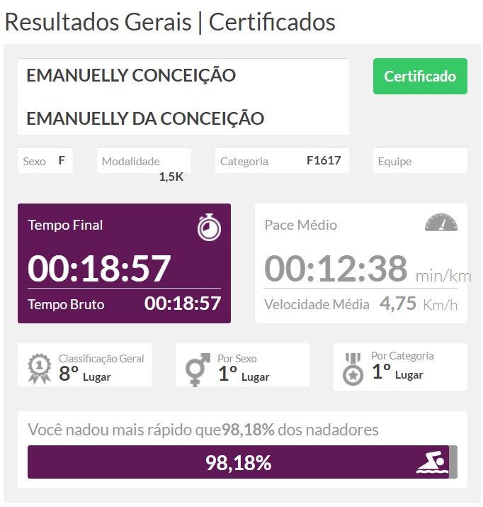 Foi realizada na manhã do último domingo, na Praia da Copacabana, a Travessia Maravilhosa, num percurso de 1.500m. A prova reuniu cerca de 1.300 nadadores. Na categoria Feminino Geral, a campeã foi a vascaína Emanuelly Batista, com o tempo de 18 minutos e 57 segundos.