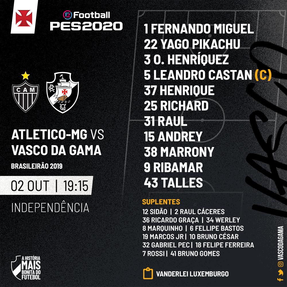Se liga na escalação do Gigante da Colina para o #CAMxVAS. Vamos com tudo, #VascoDaGama!
