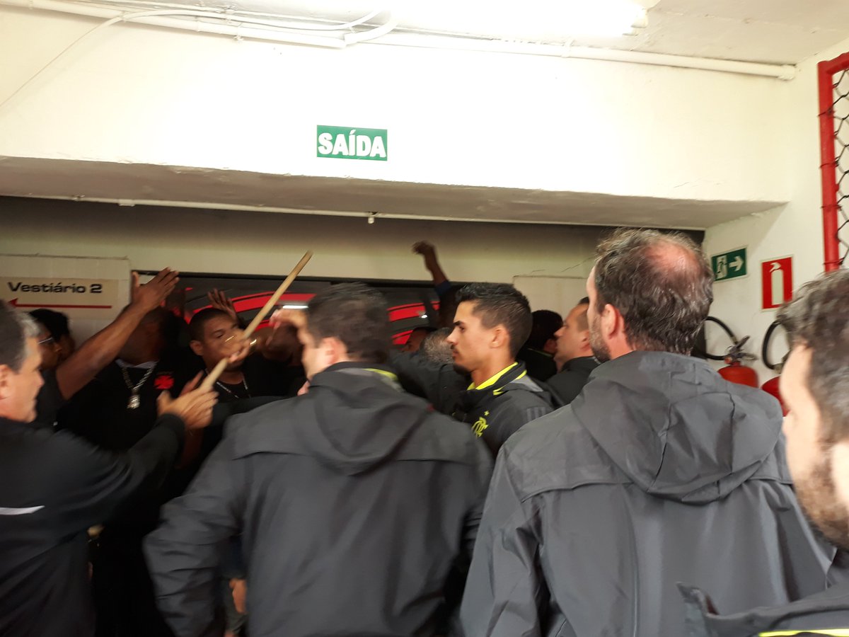 Tumulto aqui na Gávea entre jogadores, comissão técnica das duas equipes na entrada do vestiário #tropg