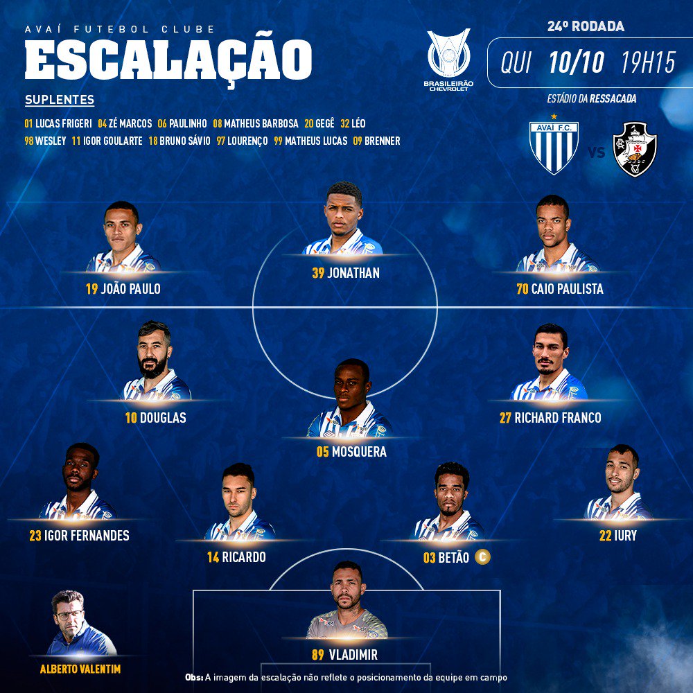 10/10/19 - Confira os desfalques e pendurados de Avaí e Vasco