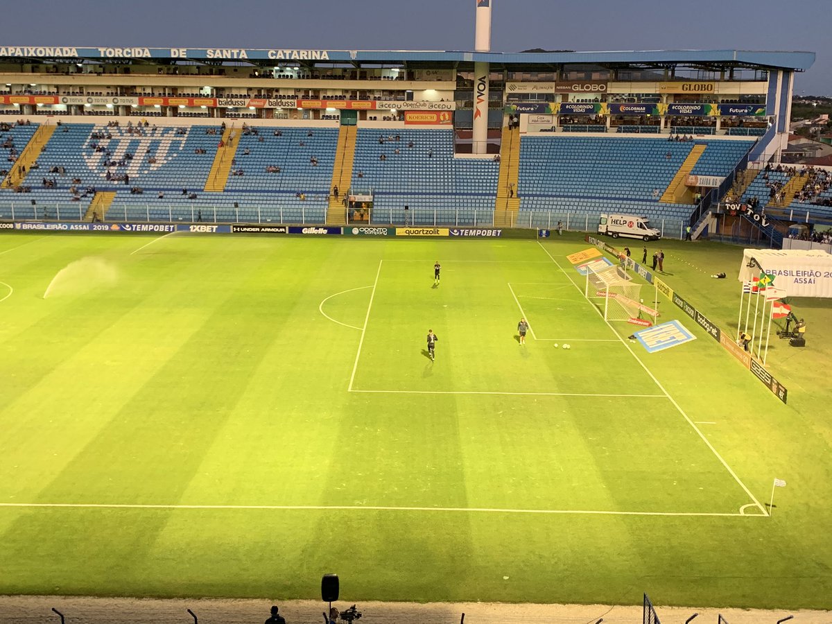 Fernando Miguel e Sidão no aquecimento no gramado da Ressacada, que parece estar em ótimas condições #trressacada