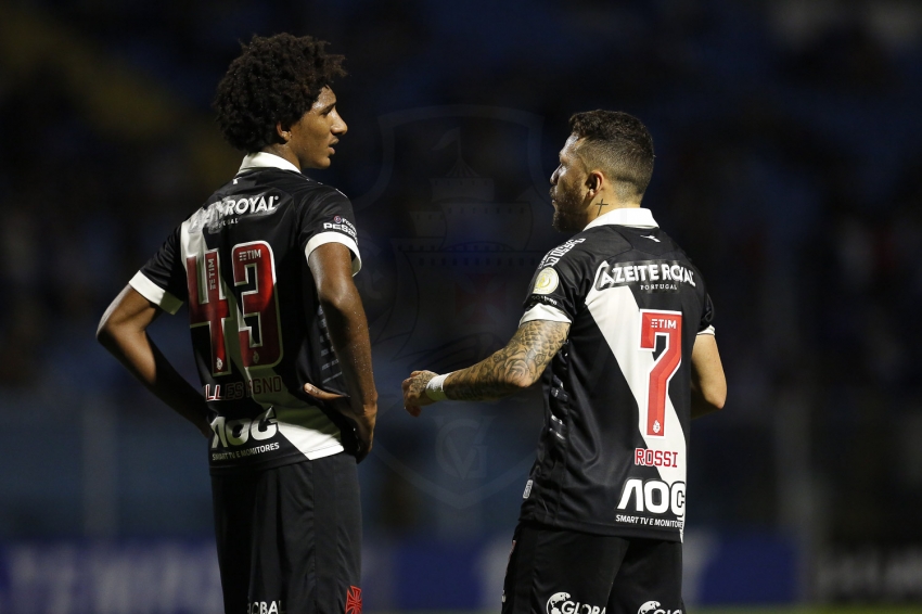 A resposta do Vasco veio em seguida. Rossi foi lançado na área e cruzou rasteiro para Talles magno. Só que Betão chegou antes do atacante cruzmaltino para salvar os donos da casa.