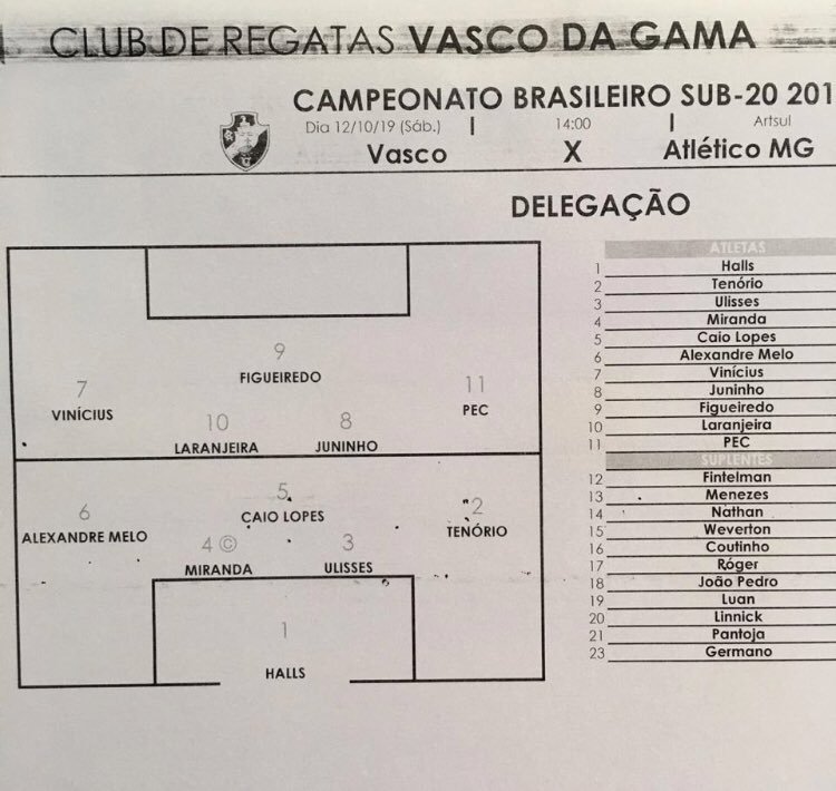 11/10/19 - Juniores: Vasco x Atlético-MG, neste sábado, às 14h, pelo Brasileiro Sub-20, terá transmissão pelo Sportv