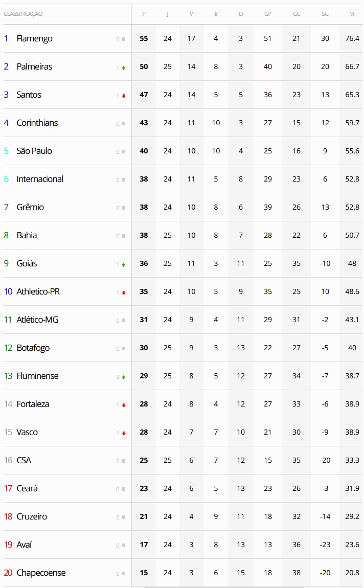 - se o Vasco perder: ficará em 15º lugar, com 28 pontos e 7 vitórias.