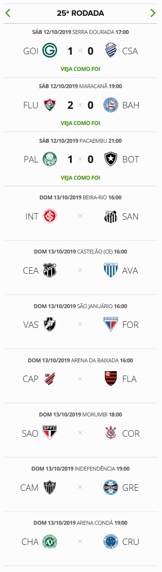 A 25ª rodada do Brasileiro teve início neste sábado, com 3 jogos: