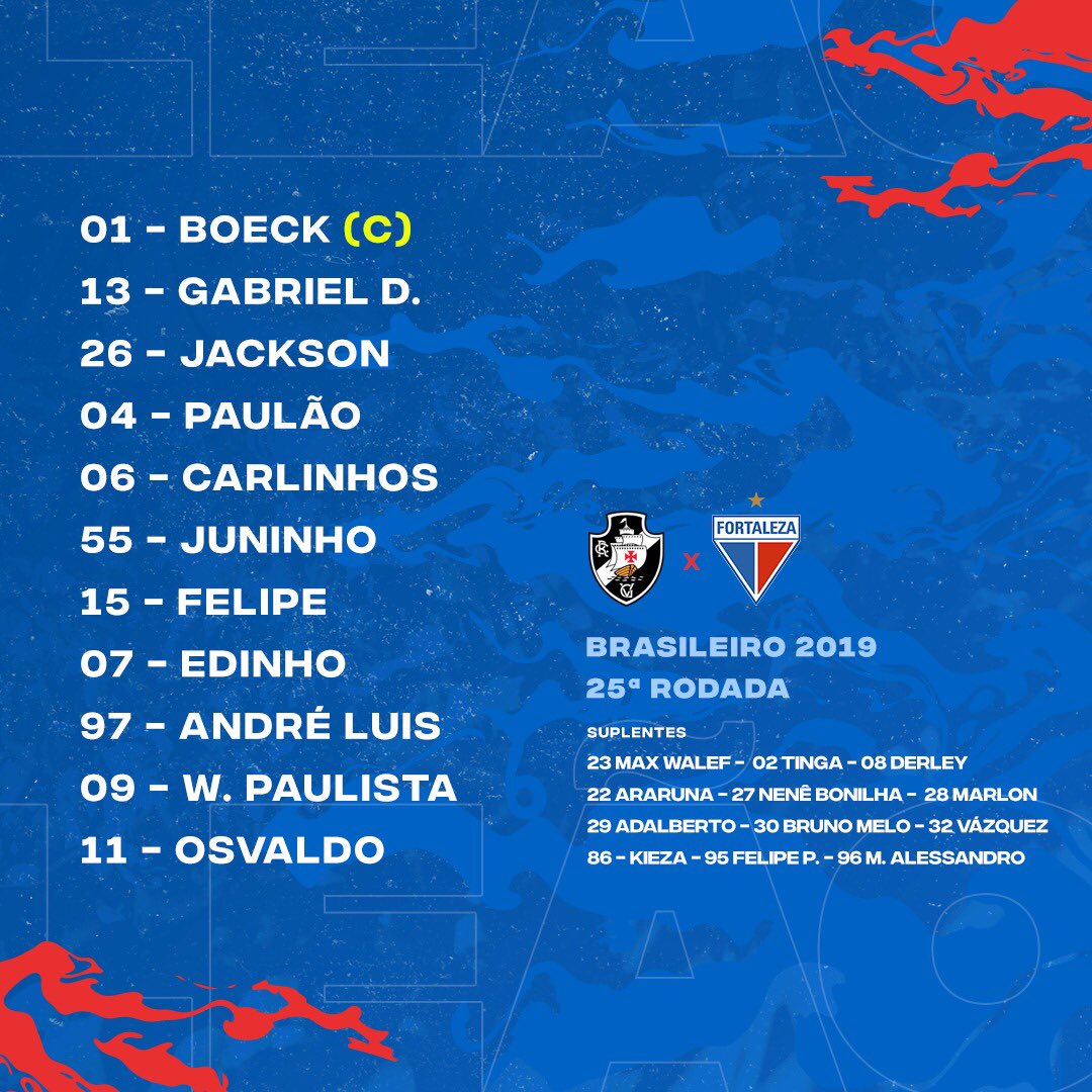 Veja a escalação do Fortaleza para o jogo contra o Vasco; ex-vascaíno Paulão é titular