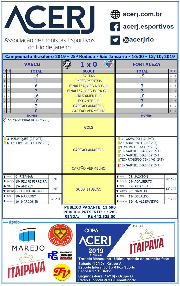 Scout Final de Vasco e Fortaleza pela 25ª Rodada do Campeonato Brasileiro 2019 em São Januário #acerjinforma #VASxFOR #Brasileirão2019