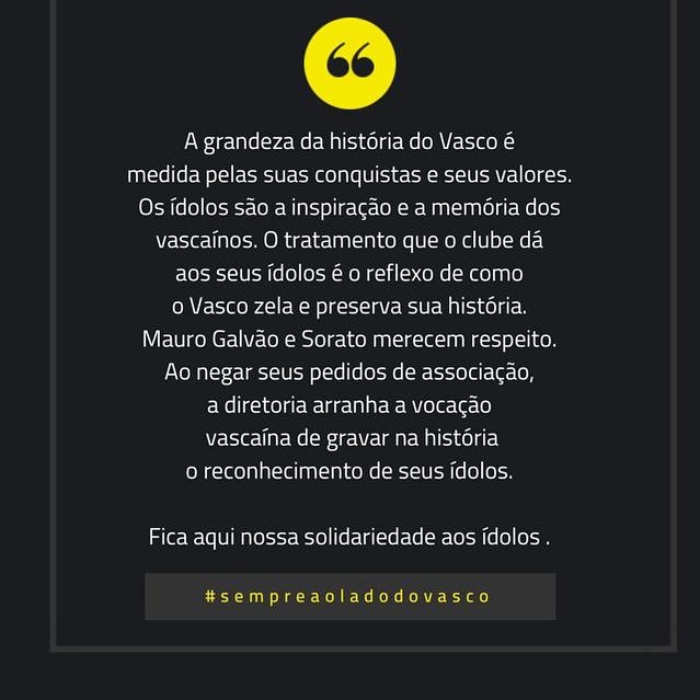 Respeito e reconhecimento são valores que sempre estiveram presentes na história do Vasco. Defendê-los é dever de todos os vascaínos. #sempreaoladodovasco #vasco #vascodagama