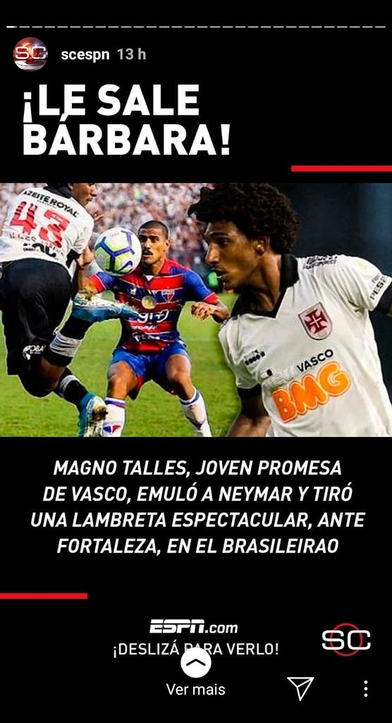 Talles Magno é destaque no Instagram oficial do 'SportsCenter ESPN', da Espanha.