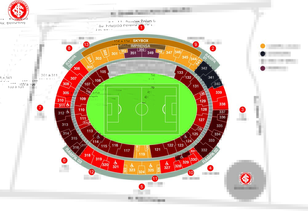 > A entrada dos sócios Academia do Povo deve ser feita pelos portões 3 (inferior), 7 (inferior - setor sem cadeiras) e 10 (superior).