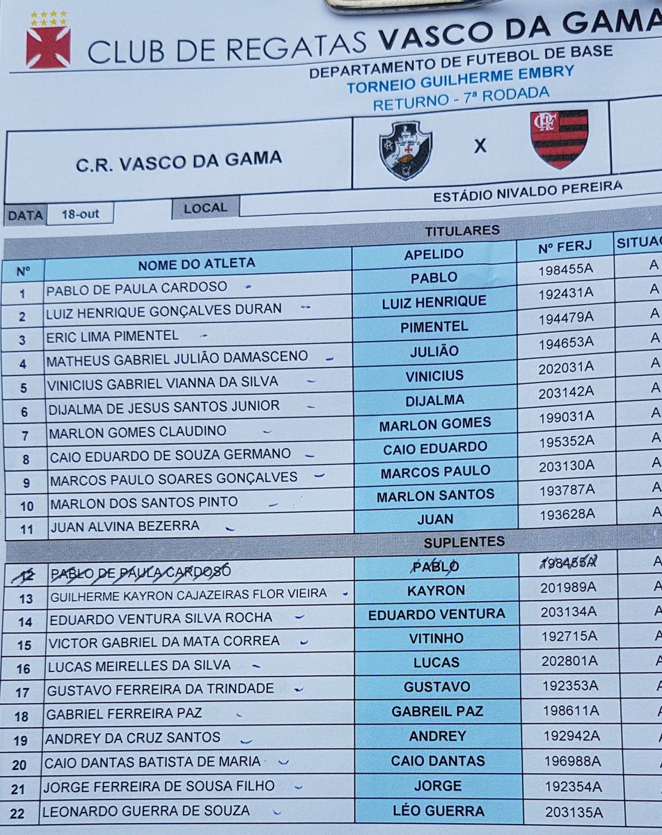 18/10/19 - Juvenil: Acompanhe Vasco x Urubu, pelo Guilherme Embry Sub-16, em tempo real