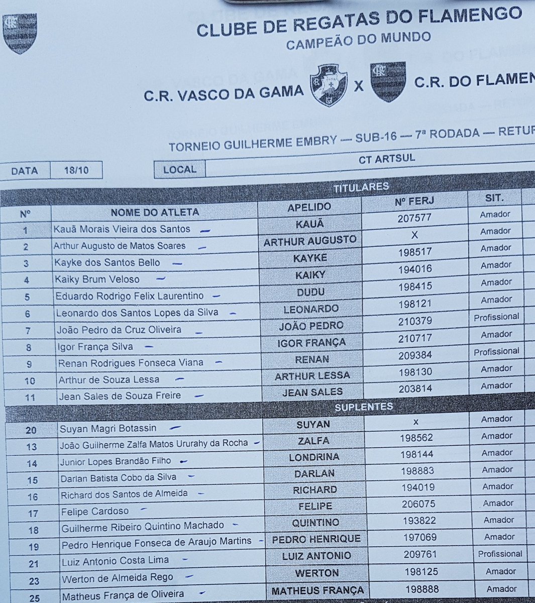 Escalações de @VascodaGama e @Flamengo.?A bola rola às 9h!