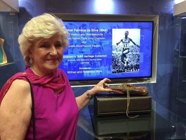 Presente no Mundial de Atletismo de Doha, Rosemary Mula cede relíquia à exposição da IAAF sobre os maiores nomes do esporte. Brasileiro é o único representante da América do Sul