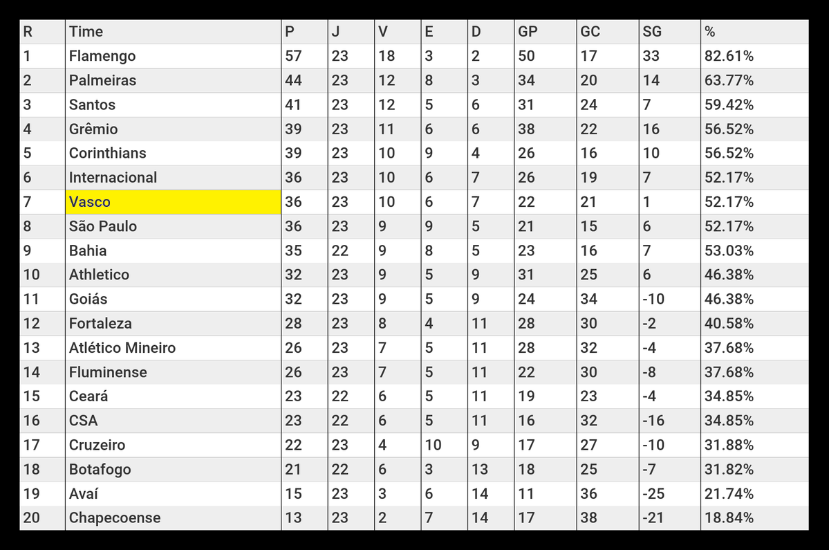 Vasco tem a 7ª campanha do Brasileiro desde que Luxemburgo assumiu a equipe (5ª rodada em diante)