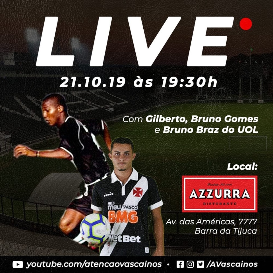 O domingo está quase acabando e temos mais uma ótima notícia! Olha quem estará em nossa Live desta segunda-feira, ao lado de Flavio Dias e o craque Bismarck: o ex-lateral Gilberto Melo, o jornalista Bruno Braz (UOL) e do volante Bruno Gomes. Eles estarão reunidos no Azzurra Ristorante, no Shopping Rio Design Barra, às 19h30!