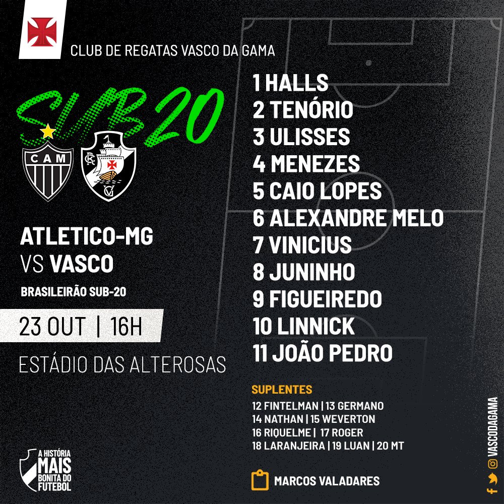 Juniores: Veja a escalação do Vasco para o jogo contra o Atlético-MG