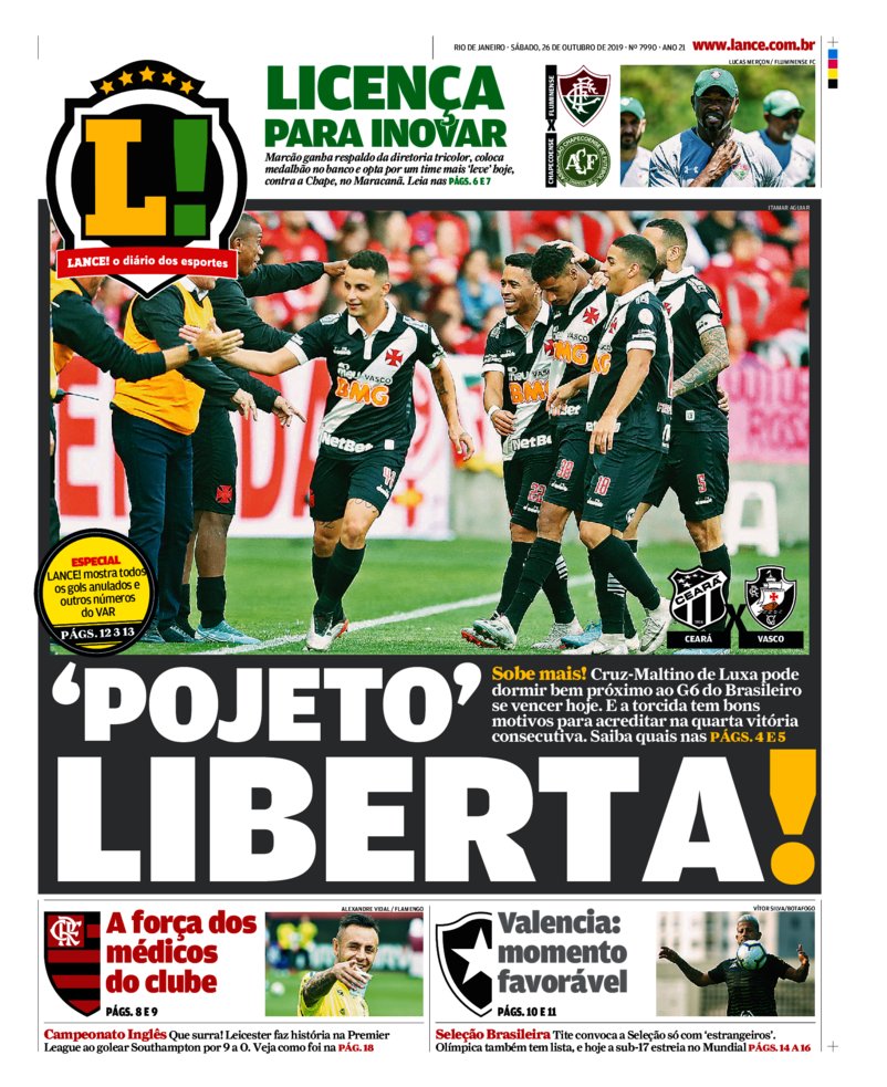 Veja como a imprensa destaca o jogo Vasco x Ceará deste sábado