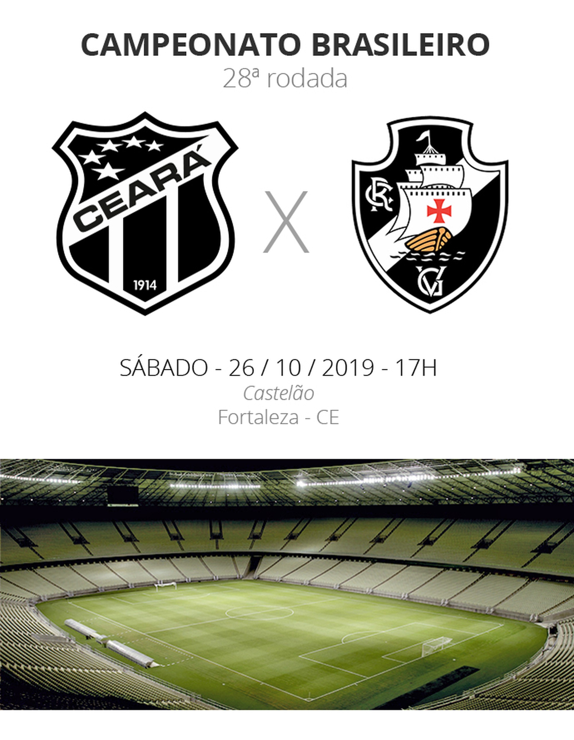 Com objetivos diferentes no Campeonato Brasileiro, Ceará e Vasco se enfrentam às 17h (de Brasília), deste sábado, no Castelão, em Fortaleza, pela 28ª rodada. Enquanto a equipe carioca quer se aproximar ainda mais do G-6, o Vozão precisa vencer em casa para se afastar da zona do rebaixamento.